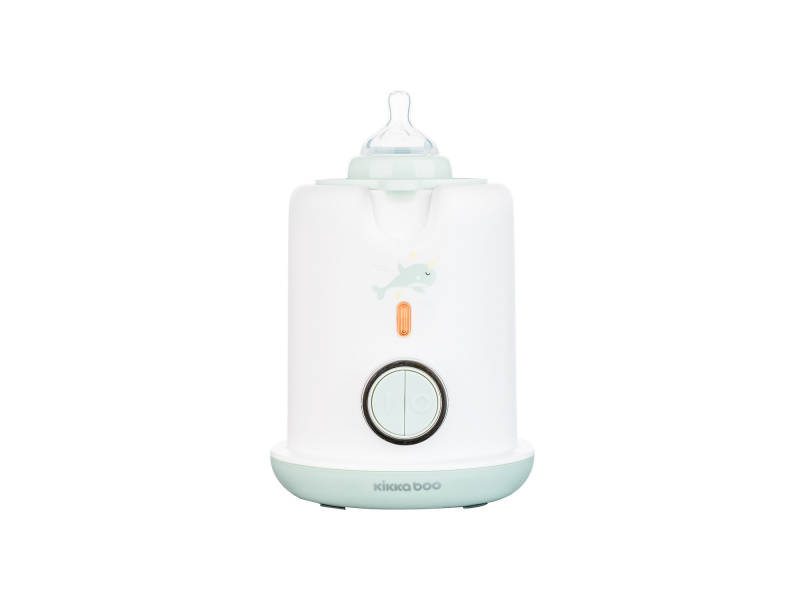 Ohřívačka KikkaBoo 3v1 Warmy je multifunkční produkt, který lze použít jako ohřívačku, sterilizátor a odšťavňovač. Nabízí funkci rychlého ohřevu kojeneckých lahví s mlékem nebo dětských příkrmů ve skleničce, mléko dokáže ohřát na optimální teplotu do 3 minut. Přístroj je možné využít i jako sterilizátor na jednu lahvičku. K ohřevu mléka a příkrmů i ke sterilizaci využívá páru. Odšťavňovací nástavec umožňuje snadnou přípravu čerstvé ovocné šťávy. Ideální pro přípravu pomerančové nebo citronové šťávy, odšťavňování se provádí ručně do kelímku, který je součástí odšťavňovacího nástavce. Díky kompaktní velikosti je ohřívačka vhodná na použití doma i na cestách. Rozměry: 14 x 14,4 x 21 cm Průměr nádoby: 7,5 cm Hmotnost: 690 g