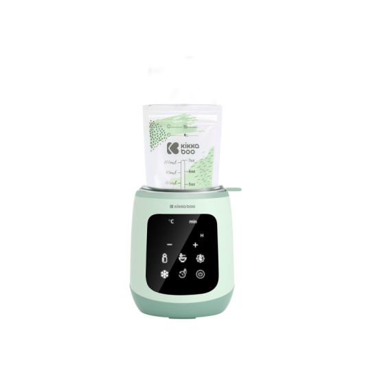 Ohřívačka KikkaBoo 4v1 Caldo je multifunkční produkt, který lze použít jako ohřívačku a sterilizátor. Nabízí funkci rychlého ohřevu kojeneckých lahví s mlékem nebo dětských příkrmů ve skleničce, mléko dokáže ohřát na optimální teplotu do 3 minut. K ohřevu mléka a příkrmů i ke sterilizaci využívá páru. Ohřívačka nabízí různé režimy: Rychlý ohřev mléka (37°) Ohřev mléka (35° až 60°C) Rozmrazování (32° až 42°C) Ohřev příkrmů (50° až 80°C) Sterilizace (100°C) Dotykový displej usnadňuje ovládání přístroje. Časovač umožňuje nastavit čas zahájení ohřevu. Rozměry: 29,8 x 13,7 x 12,6 cm Hmotnost: 630 g
