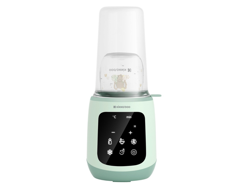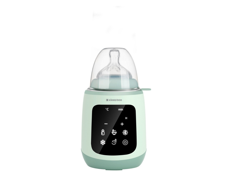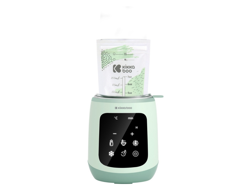 Ohřívačka KikkaBoo 4v1 Caldo je multifunkční produkt, který lze použít jako ohřívačku a sterilizátor. Nabízí funkci rychlého ohřevu kojeneckých lahví s mlékem nebo dětských příkrmů ve skleničce, mléko dokáže ohřát na optimální teplotu do 3 minut. K ohřevu mléka a příkrmů i ke sterilizaci využívá páru. Ohřívačka nabízí různé režimy: Rychlý ohřev mléka (37°) Ohřev mléka (35° až 60°C) Rozmrazování (32° až 42°C) Ohřev příkrmů (50° až 80°C) Sterilizace (100°C) Dotykový displej usnadňuje ovládání přístroje. Časovač umožňuje nastavit čas zahájení ohřevu. Rozměry: 29,8 x 13,7 x 12,6 cm Hmotnost: 630 g