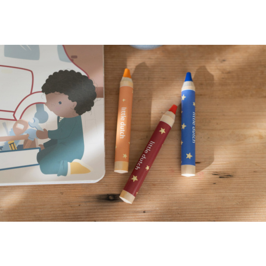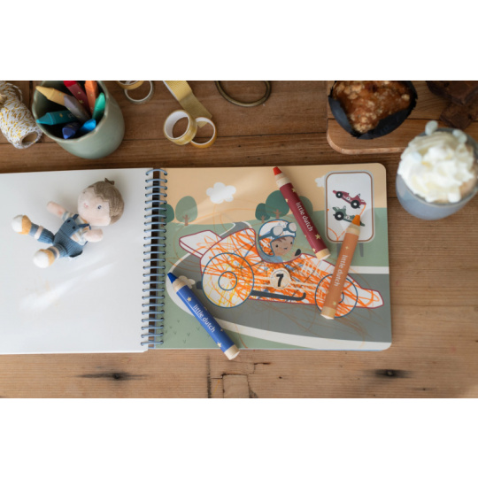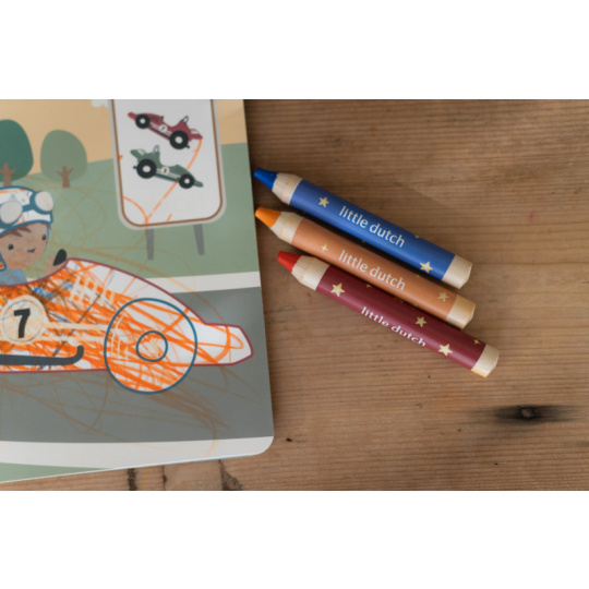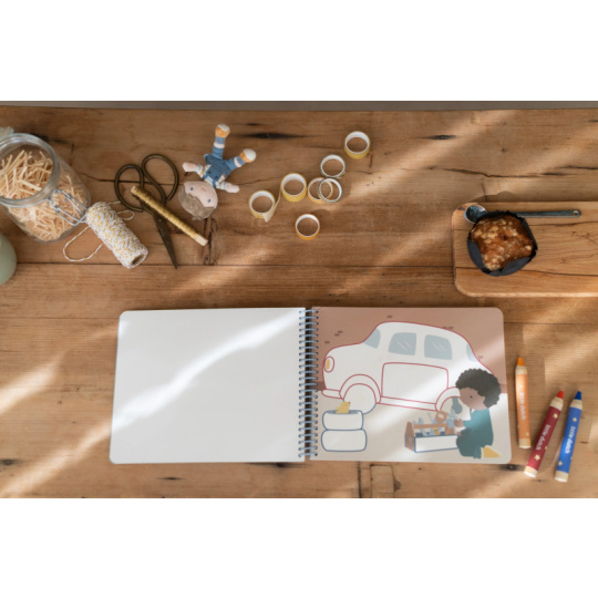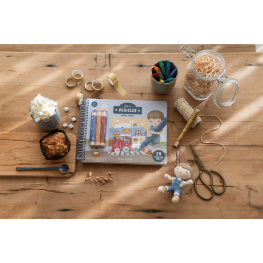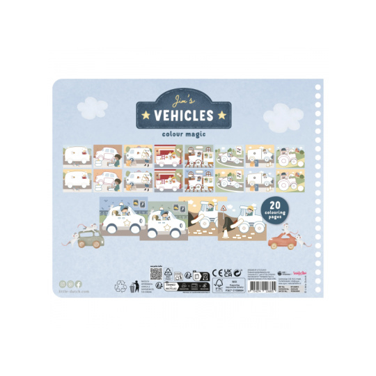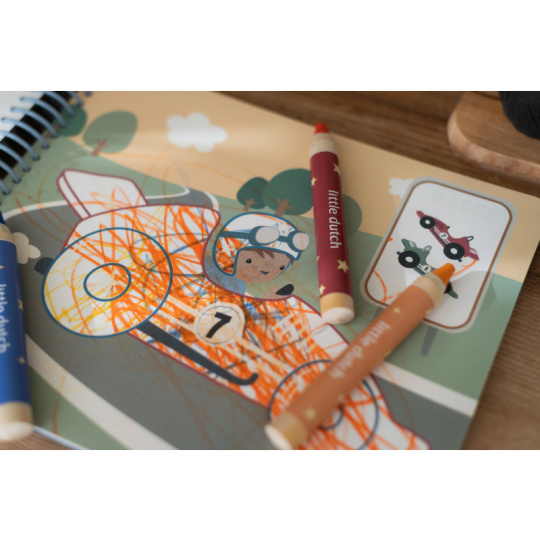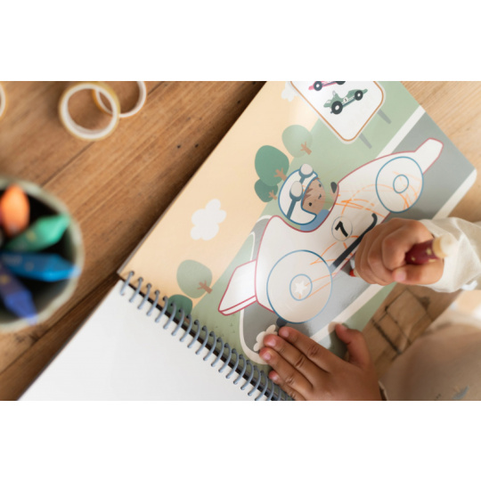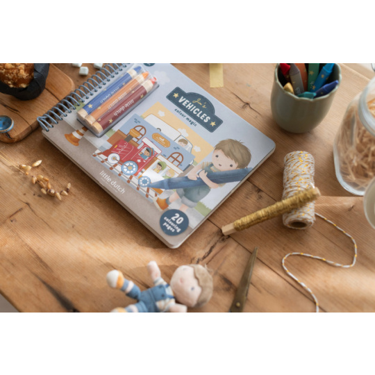 Nechte své dítě objevovat svět barev s těmito kouzelnými omalovánkami Little Dutch. Jemné ilustrace s tématikou dopravních prostředků vybízejí k vybarvování a rozvíjejí dětskou fantazii. Pastelky rozvíjejí jemnou motoriku a díky svému tvaru se snadno drží. Součástí sady jsou tři pastelky, dvacet předtištěných a deset prázdných stránek pro nekonečné malování podle představ. Vyrobeno z pevného papíru, díky spirále ve hřbetu se stránky omalovánek snadno otáčí a drží otevřené na stole. Vhodné pro děti od 2 let.
