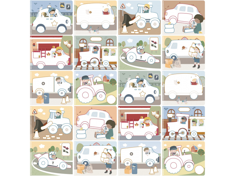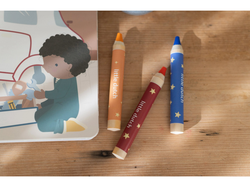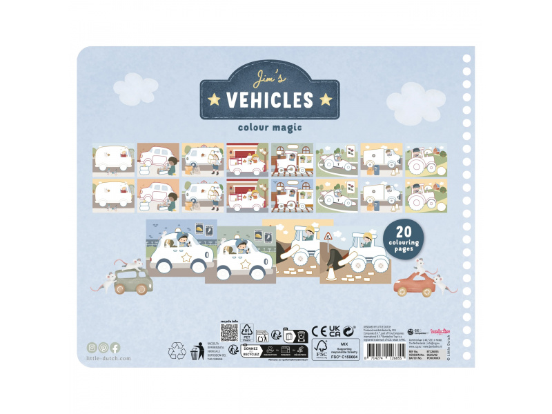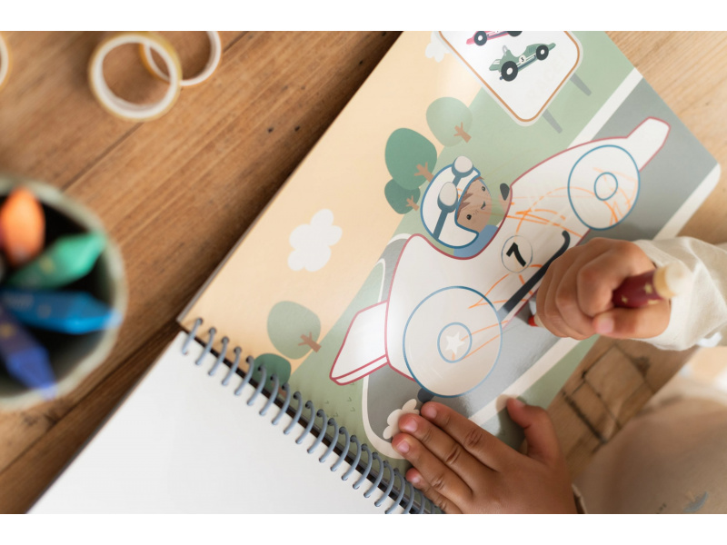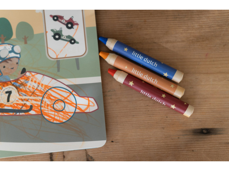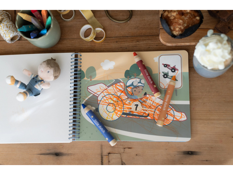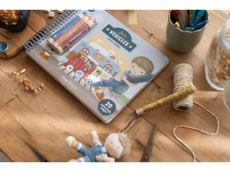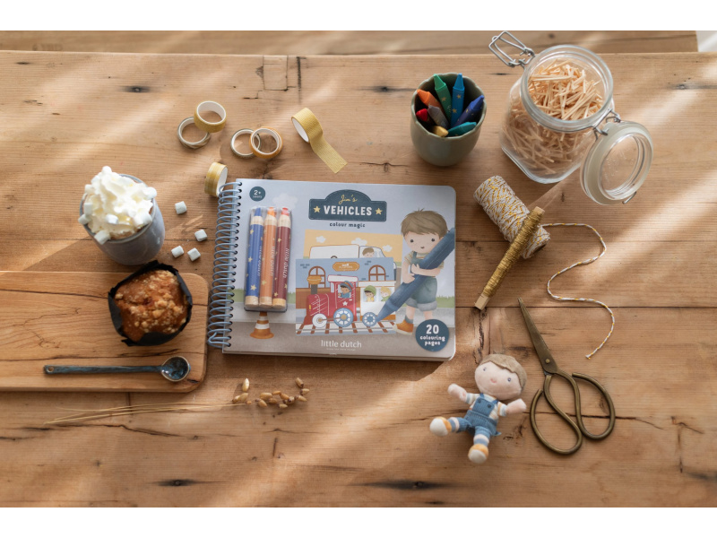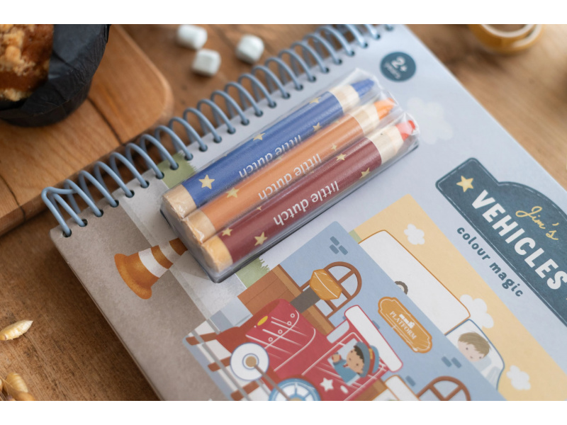 Nechte své dítě objevovat svět barev s těmito kouzelnými omalovánkami Little Dutch. Jemné ilustrace s tématikou dopravních prostředků vybízejí k vybarvování a rozvíjejí dětskou fantazii. Pastelky rozvíjejí jemnou motoriku a díky svému tvaru se snadno drží. Součástí sady jsou tři pastelky, dvacet předtištěných a deset prázdných stránek pro nekonečné malování podle představ. Vyrobeno z pevného papíru, díky spirále ve hřbetu se stránky omalovánek snadno otáčí a drží otevřené na stole. Vhodné pro děti od 2 let.