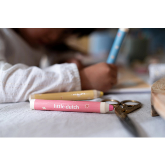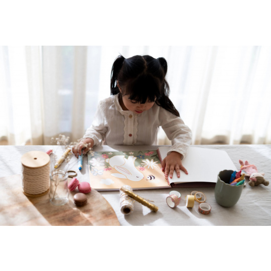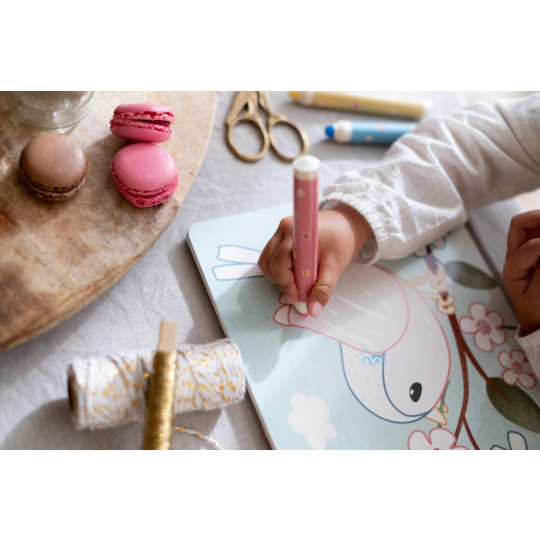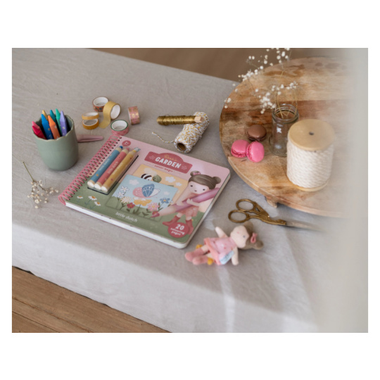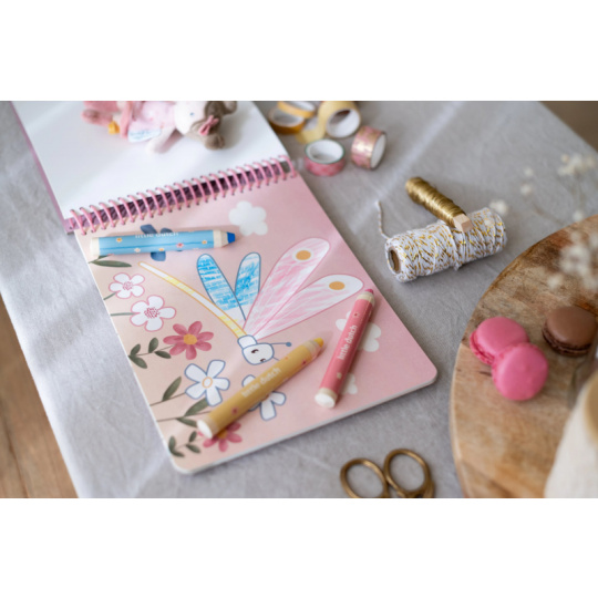 Nechte své dítě objevovat svět barev s těmito kouzelnými omalovánkami Little Dutch. Jemné ilustrace s tématikou ze života na zahradě vybízejí k vybarvování a rozvíjejí dětskou fantazii. Pastelky rozvíjejí jemnou motoriku a díky svému tvaru se snadno drží. Součástí sady jsou tři pastelky, dvacet předtištěných a deset prázdných stránek pro nekonečné malování podle představ. Vyrobeno z pevného papíru, díky spirále ve hřbetu se stránky omalovánek snadno otáčí a drží otevřené na stole. Vhodné pro děti od 2 let.