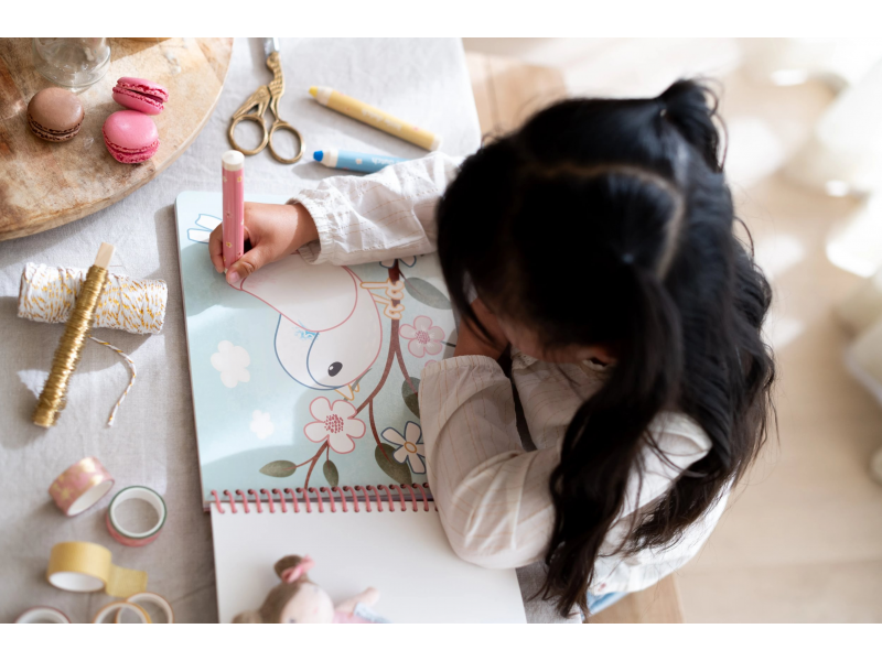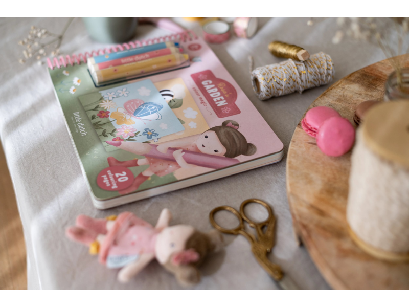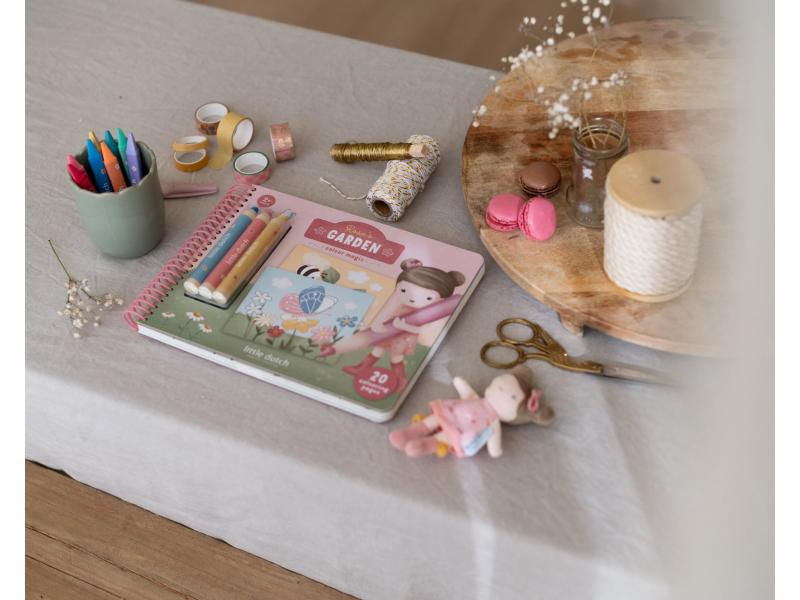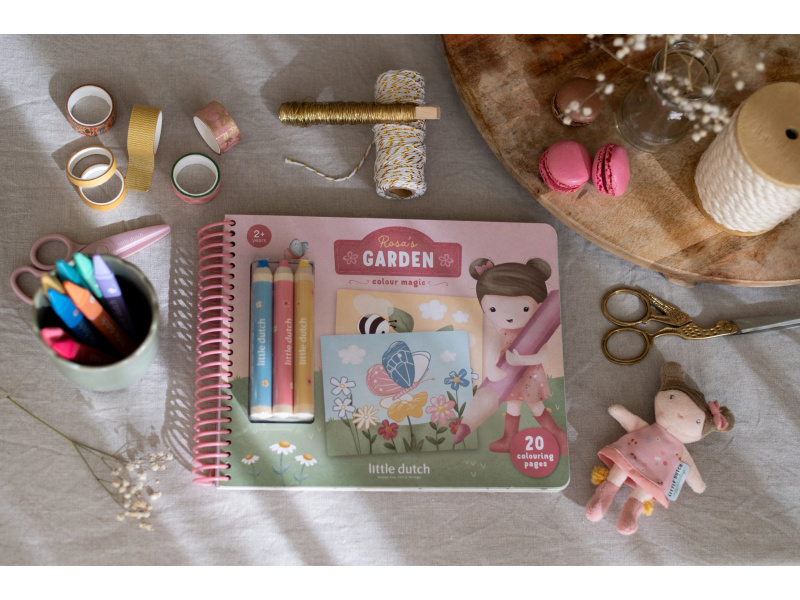 Nechte své dítě objevovat svět barev s těmito kouzelnými omalovánkami Little Dutch. Jemné ilustrace s tématikou ze života na zahradě vybízejí k vybarvování a rozvíjejí dětskou fantazii. Pastelky rozvíjejí jemnou motoriku a díky svému tvaru se snadno drží. Součástí sady jsou tři pastelky, dvacet předtištěných a deset prázdných stránek pro nekonečné malování podle představ. Vyrobeno z pevného papíru, díky spirále ve hřbetu se stránky omalovánek snadno otáčí a drží otevřené na stole. Vhodné pro děti od 2 let.