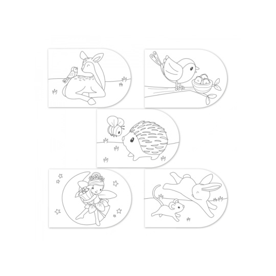 Krásné omalovánky na silném papíru obsahují 4 akrylové barvy se štětcem, 5 jednoduchých obrázků s motivy zvířátek a 25 čistých stránek pro malování dle vlastní fantazie dítěte. Díky spirále ve hřbetu se stránky omalovánek snadno otáčí. Omalovánky nabízí skvělý způsob, jak rozvíjet jemnou motoriku i představivost dítěte. Omalovánky jsou součástí designové kolekce hraček a doplňků Little Dutch Fairy Garden, inspirované životem na zahradě. Rozměry: 21 x 30 x 1,5 cm Vhodné pro děti od 3 let.