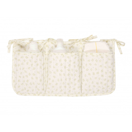 Praktický závěsný organizér v krásném provedení s něžným potiskem vám umožní mít vše potřebné pro péči o vaše miminko vždy po ruce. Organizér ze 100% organické bavlny nabízí tři prostorné kapsy pro uložení dudlíků, bryndáčků, plen, ubrousků, hraček apod. Pomocí praktických vázacích šňůrek jej snadno připevníte k přebalovacímu pultu, na stěnu či na postýlku. Organizér je součástí designové kolekce textilu a doplňků Little Dutch Blueberry Leaves. Složení: 100% organická bavlna Rozměry: 42 x 22 cm