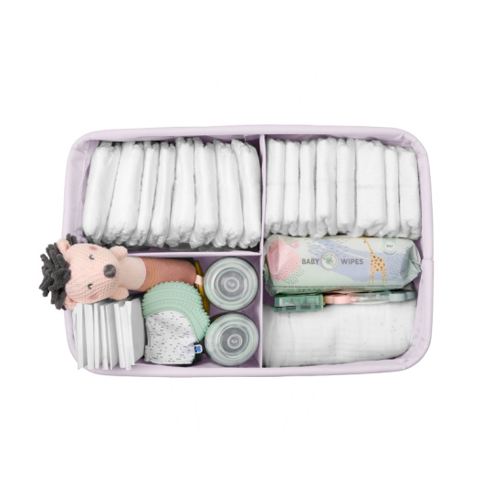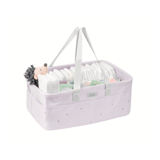 Praktický přenosný organizér v krásném textilním provedení s vnitřními přehrádkami vám pomůže přehledně uložit toaletní a přebalovací potřeby pro vaše miminko. Díky držadlům se snadno přenáší a můžete jej tak mít vždy po ruce kdekoli potřebujete. Odnímatelná přepážka umožnuje volbu členění vnitřního prostoru. Když organizér nepoužíváte, snadno jej složíte do plochého tvaru pro uložení. Složení: 100% polyester Rozměry: 42 x 27 x 17 cm