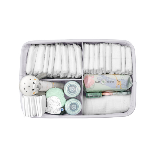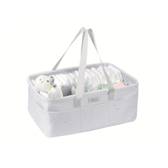 Praktický přenosný organizér v krásném textilním provedení s vnitřními přehrádkami vám pomůže přehledně uložit toaletní a přebalovací potřeby pro vaše miminko. Díky držadlům se snadno přenáší a můžete jej tak mít vždy po ruce kdekoli potřebujete. Odnímatelná přepážka umožnuje volbu členění vnitřního prostoru. Když organizér nepoužíváte, snadno jej složíte do plochého tvaru pro uložení. Složení: 100% polyester Rozměry: 42 x 27 x 17 cm