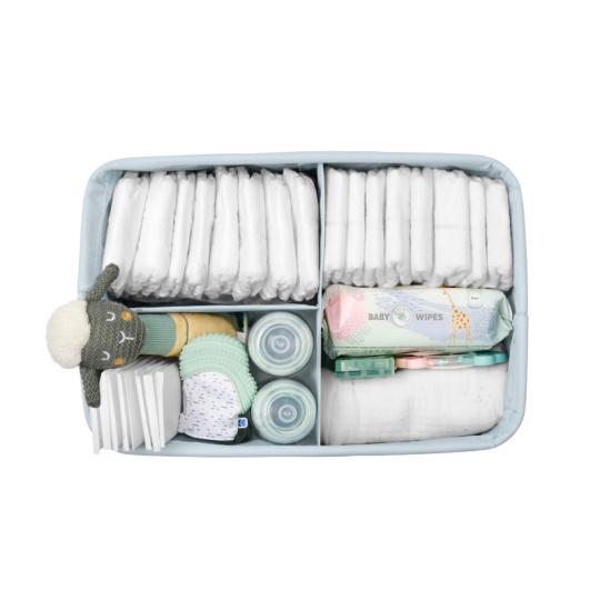 Praktický přenosný organizér v krásném textilním provedení s vnitřními přehrádkami vám pomůže přehledně uložit toaletní a přebalovací potřeby pro vaše miminko. Díky držadlům se snadno přenáší a můžete jej tak mít vždy po ruce kdekoli potřebujete. Odnímatelná přepážka umožnuje volbu členění vnitřního prostoru. Když organizér nepoužíváte, snadno jej složíte do plochého tvaru pro uložení. Složení: 100% polyester Rozměry: 42 x 27 x 17 cm