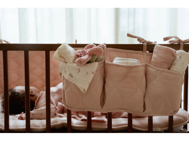 Praktický závěsný organizér v krásném provedení s ozdobným prošíváním vám umožní mít vše potřebné pro péči o vaše miminko vždy po ruce. Organizér ze 100% organické bavlny nabízí tři prostorné kapsy pro uložení dudlíků, bryndáčků, plen, ubrousků, hraček apod. Pomocí praktických vázacích šňůrek jej snadno připevníte k přebalovacímu pultu, na stěnu či na postýlku. Organizér je součástí designové kolekce textilu a doplňků Little Dutch Pure. Složení: 100% organická bavlna, výplň 100% polyester Rozměry: 42 x 22 cm Možno prát v pračce.