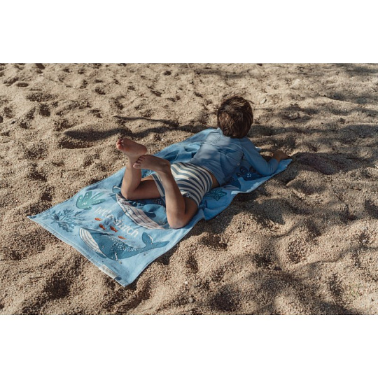 Měkká froté osuška z jemné organické bavlny s krásným potiskem je ideální pro snadné a rychlé osušení a zabalení dítěte po koupání v bazénu, v moři i doma po koupeli. Složení: 100% organická bavlna Rozměry: 120 x 60 cm Možno prát v pračce.
