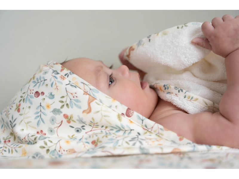 Měkká froté osuška s kapucí z jemné organické bavlny je ideální pro snadné a rychlé osušení a zabalení miminka po koupeli. Osuška je součástí designové kolekce textilu, hraček a doplňků Little Dutch Forest Friends, inspirované životem v lese. Složení: 100% organická bavlna Rozměry: 75 x 75 cm