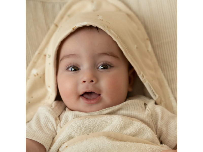 Měkká froté osuška s kapucí z jemné organické bavlny je ideální pro snadné a rychlé osušení a zabalení dítěte po koupeli. Osuška je součástí designové kolekce textilu a doplňků Little Dutch Newborn Naturals. Složení: 100% organická bavlna Rozměry: 100 x 100 cm Možno prát v pračce.