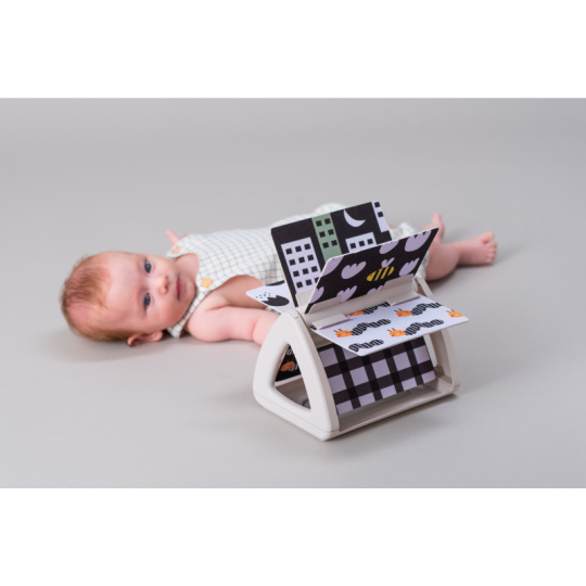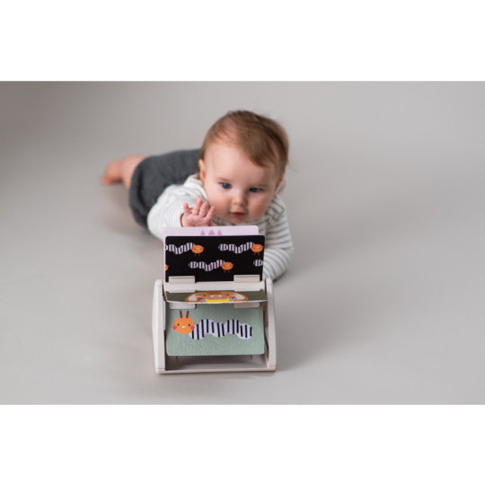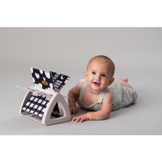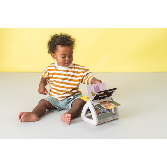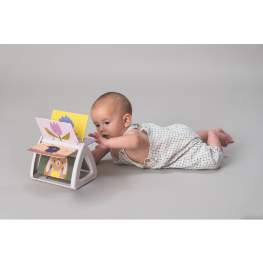 Originální otočná knížka s krásnými ilustracemi motivů ze života na zahradě nabízí různé typy obrázků pro tři vývojová stádia dítěte: 0-3 měsíce: vysoce kontrastní, jednoduché obrázky v základních barvách, které podněcují rozvoj smyslů a emoční inteligence dítěte. Od 3 měsíců: výrazné barevné obrázky a chrasticí zvuk při otáčení jednotlivých stránek upoutají pozornost dítěte při hře na bříšku Od 8 měsíců si dítě dokáže samo vsedě otáčet a prohlížet obrázky, o kterých si můžete společně povídat Rozměry: 19 x 14,50 x 22 cm Vhodné pro děti od narození.