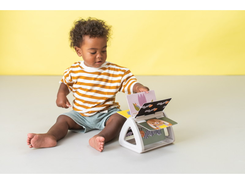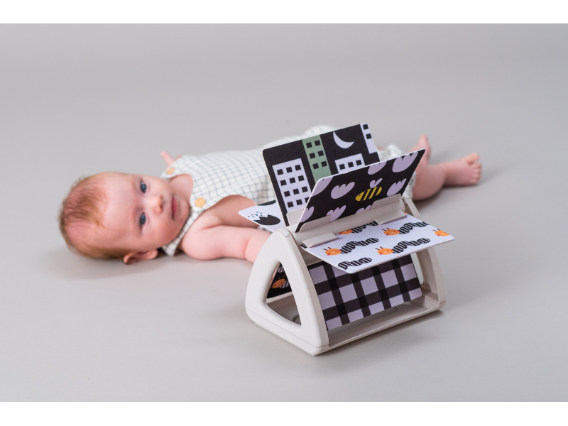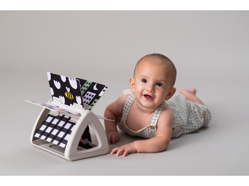 Originální otočná knížka s krásnými ilustracemi motivů ze života na zahradě nabízí různé typy obrázků pro tři vývojová stádia dítěte: 0-3 měsíce: vysoce kontrastní, jednoduché obrázky v základních barvách, které podněcují rozvoj smyslů a emoční inteligence dítěte. Od 3 měsíců: výrazné barevné obrázky a chrasticí zvuk při otáčení jednotlivých stránek upoutají pozornost dítěte při hře na bříšku Od 8 měsíců si dítě dokáže samo vsedě otáčet a prohlížet obrázky, o kterých si můžete společně povídat Rozměry: 19 x 14,50 x 22 cm Vhodné pro děti od narození.