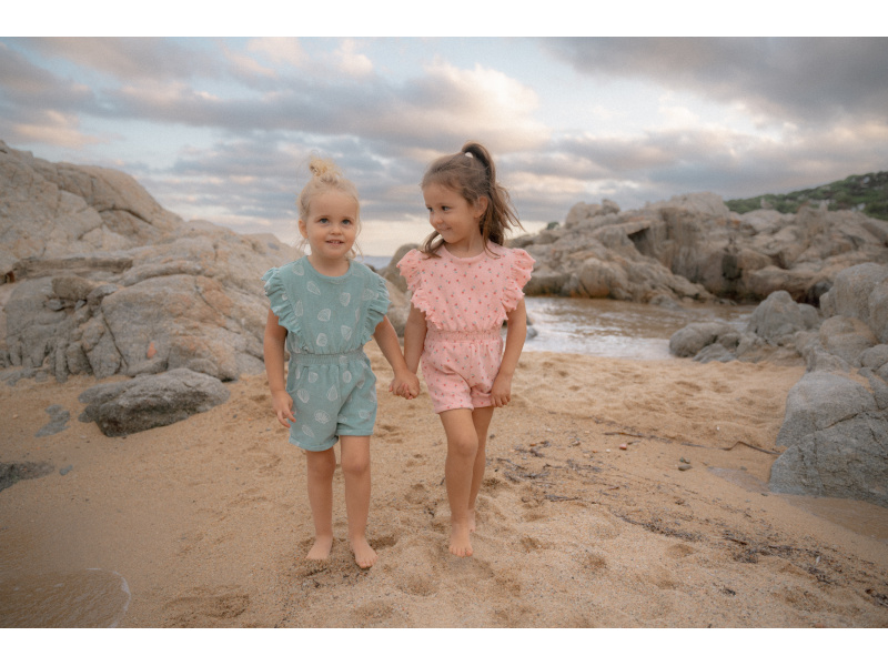 Overal z příjemného bavlněného froté materiálu je ideální pro teplé letní dny na pláži, zahradě i na výletech a procházkách. Složení: 100% organická bavlna Možno prát v pračce na 30°C.
