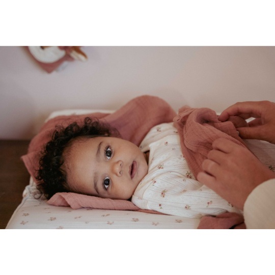 Overal na spaní z měkké organické bavlny s jemným květinovým potiskem má zapínání na patentky na přední straně a v rozkroku pro snadné oblékání i přebalování dítěte. Overal je součástí designové kolekce textilu, hraček a doplňků Little Dutch Fairy Garden inspirované životem na zahradě. Složení: 100% organická bavlna