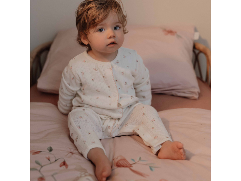 Overal na spaní z měkké organické bavlny s jemným květinovým potiskem má zapínání na patentky na přední straně a v rozkroku pro snadné oblékání i přebalování dítěte. Overal je součástí designové kolekce textilu, hraček a doplňků Little Dutch Fairy Garden inspirované životem na zahradě. Složení: 100% organická bavlna