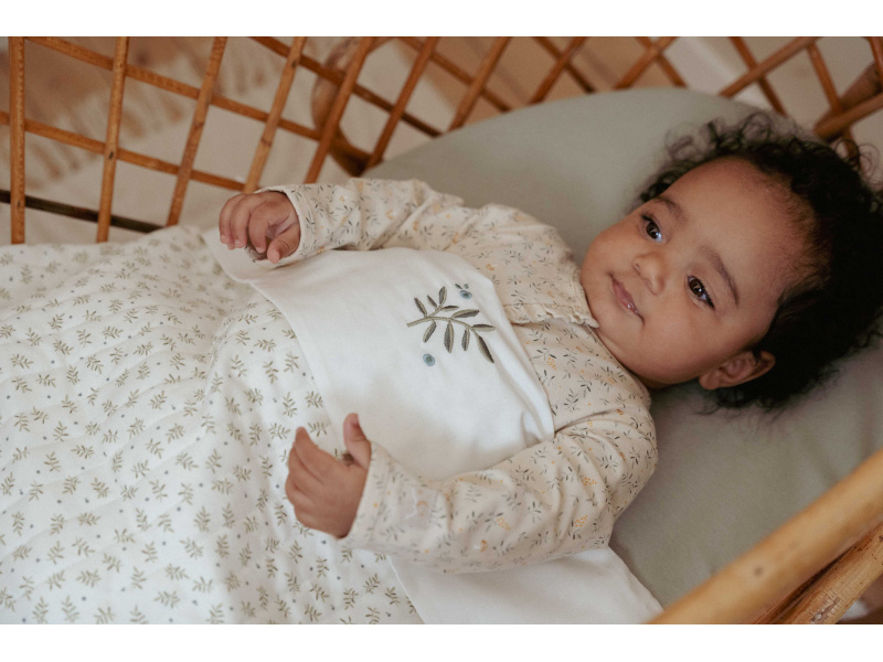 Overal na spaní z měkké organické bavlny s jemným potiskem má zapínání na patentky na přední straně a v rozkroku pro snadné oblékání i přebalování dítěte. Overal je součástí designové kolekce textilu, hraček a doplňků Little Dutch Fairy Garden inspirované životem na zahradě. Složení: 100% organická bavlna