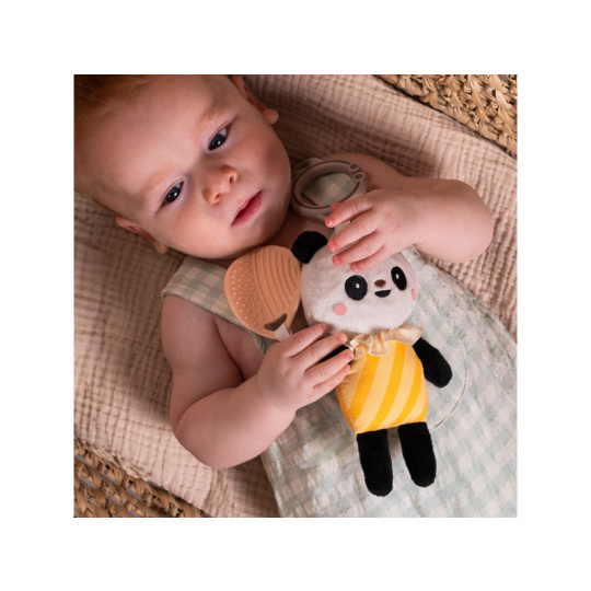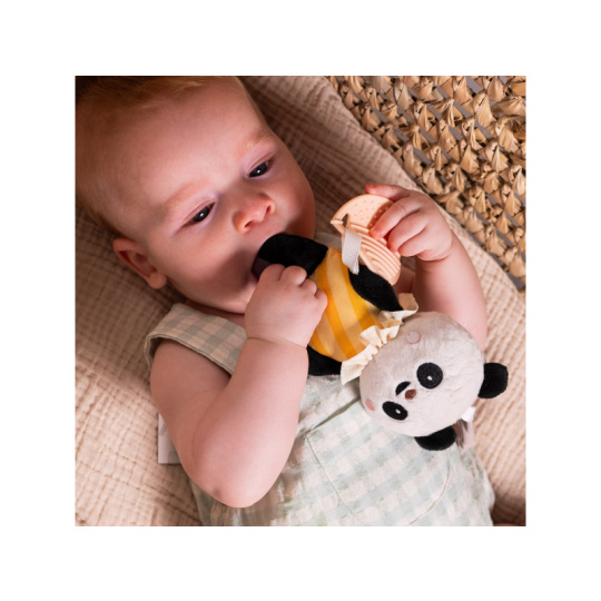Závěsná plyšová hračka v podobě roztomilé pandy Pamely při pohybu chrastí a při zmáčknutí šustí. Součástí hračky je i pružné kousátko ve tvaru kytičky. Díky závěsnému kroužku hračku snadno připevníte např. na autosedačku či kočárek. Hračka pomáhá rozvíjet jednotlivé smysly, motoriku a emoční inteligenci dítěte. Vhodné pro děti od narození.