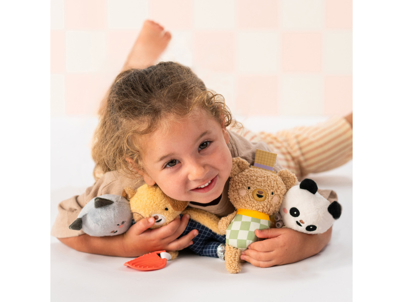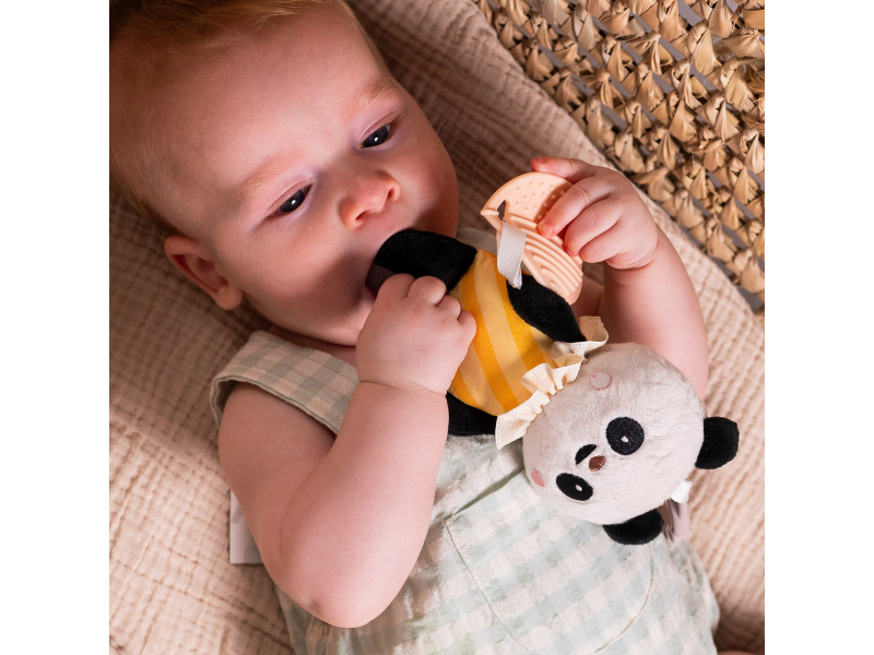 Závěsná plyšová hračka v podobě roztomilé pandy Pamely při pohybu chrastí a při zmáčknutí šustí. Součástí hračky je i pružné kousátko ve tvaru kytičky. Díky závěsnému kroužku hračku snadno připevníte např. na autosedačku či kočárek. Hračka pomáhá rozvíjet jednotlivé smysly, motoriku a emoční inteligenci dítěte. Vhodné pro děti od narození.