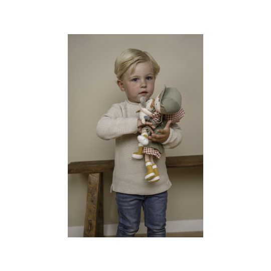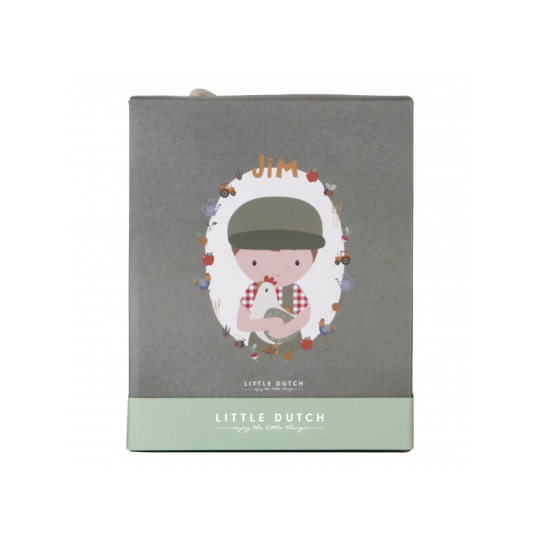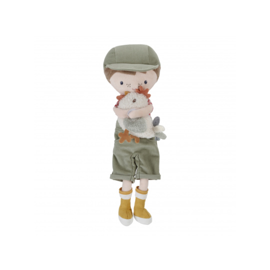 Originální plyšová panenka v podobě farmáře Jima v manšestrových kalhotách s laclem a se slepičkou v ruce. Panenka z měkkého jemného materiálu je ideální jako první panenka pro vaše dítě, je vhodná na hraní i mazlení a bude se s ní i krásně usínat! Panenka je dodávána v krásné dárkové krabičce. Rozměry: 35 x 12 x 10,5 cm Vhodné pro děti od 12 měsíců.