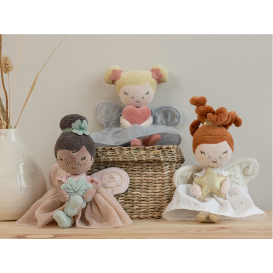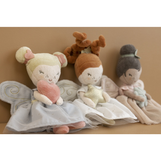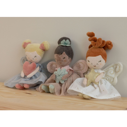 Ze světa kouzel k vám domů přichází víla Fay a se svým srdcem v dlaních přináší lásku do života vašich dětí. Panenka z jemnoho měkkého materiálu v krásných šatech s balerínkami a se zdobenými křídly je vhodná na hraní i mazlení a bude se s ní i krásně usínat! Rozměry: 20 x 12 x 8 cm Vhodné pro děti od 12 měsíců.