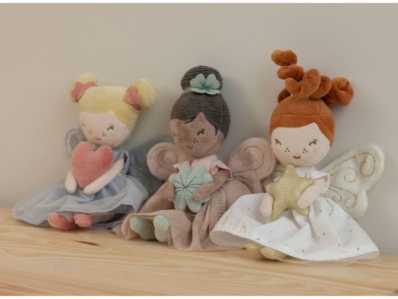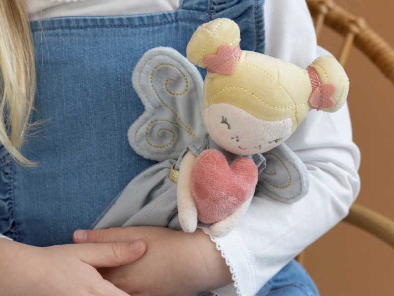 Ze světa kouzel k vám domů přichází víla Fay a se svým srdcem v dlaních přináší lásku do života vašich dětí. Panenka z jemnoho měkkého materiálu v krásných šatech s balerínkami a se zdobenými křídly je vhodná na hraní i mazlení a bude se s ní i krásně usínat! Rozměry: 20 x 12 x 8 cm Vhodné pro děti od 12 měsíců.