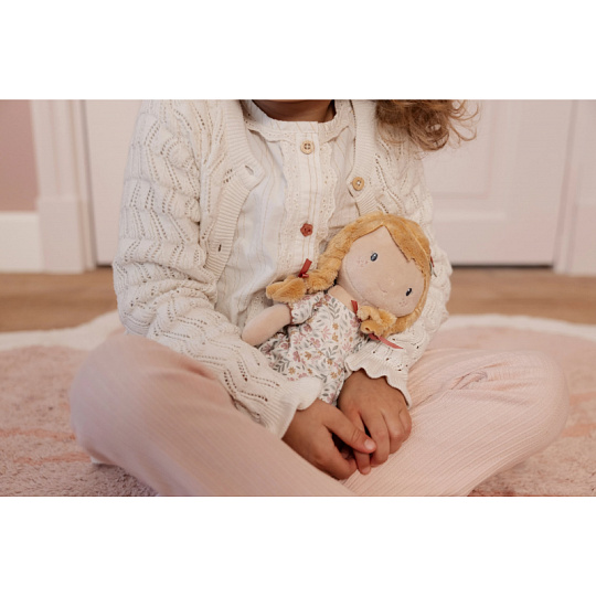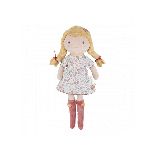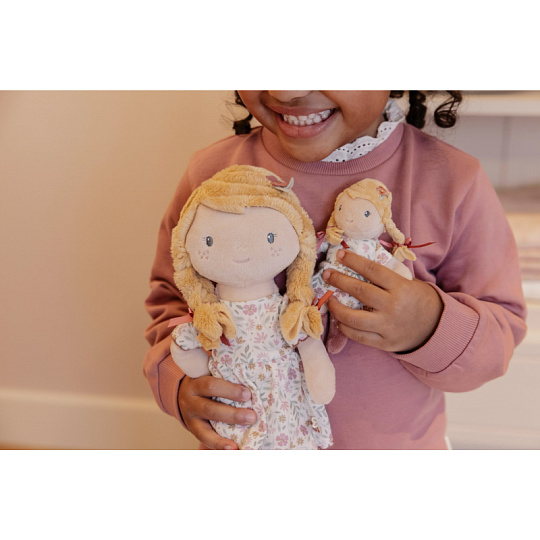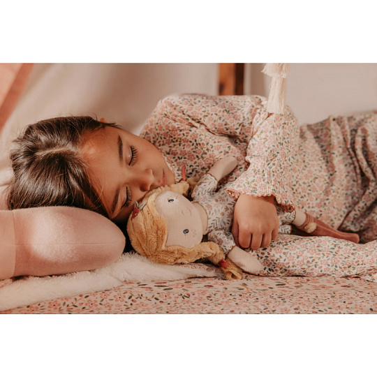 Něžná plyšová panenka Julia z měkkého jemného materiálu je oblečená do krásných květovaných šatiček. Je vhodná na hraní i mazlení a bude se s ní i krásně usínat! Výplň je vyrobena ze 100% recyklovaného polyesteru s certifikací GRS (Global Recycled Standard). Rozměry: 35 x 11 x 6 cm Složení: 100% polyester Možno prát v pračce na 30°C. Vhodné pro děti od 12 měsíců.
