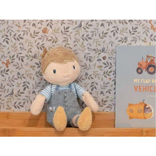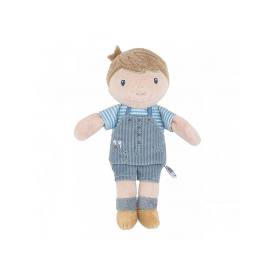 Roztomilá mini plyšová panenka v podobě chlapečka Jima z měkkého jemného materiálu je ideální jako první panenka pro vaše dítě. Panenka je vhodná na hraní i mazlení a bude se s ní i krásně usínat! Výplň je vyrobena ze 100% recyklovaného polyesteru s certifikací GRS (Global Recycled Standard). Rozměry: 13 x 10 x 4 cm Složení: 100% polyester Možno prát v pračce na 30°C. Vhodné pro děti od 12 měsíců.