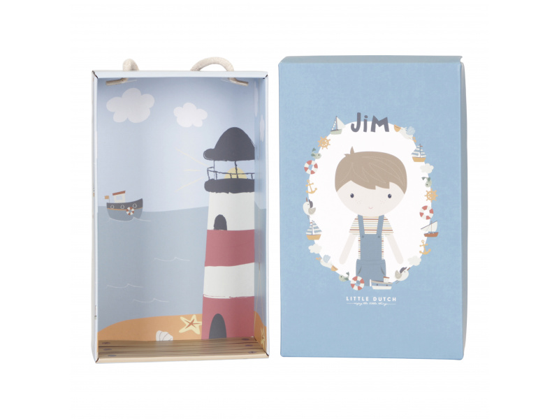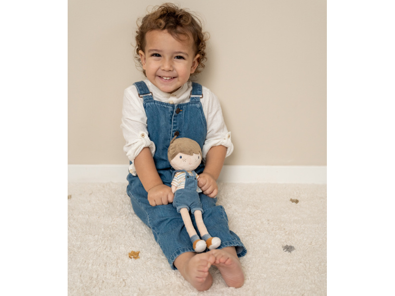 Rošťácká plyšová panenka Jim z měkkého jemného materiálu je oblečená do krátkých kalhot s laclem a pruhovaného trička. Panenka je vhodná na hraní i mazlení a bude se s ní i krásně usínat! Panenka je dodávána v krásné dárkové krabičce. Rozměry: 35 x 9 x 6 cm Vhodné pro děti od 12 měsíců.
