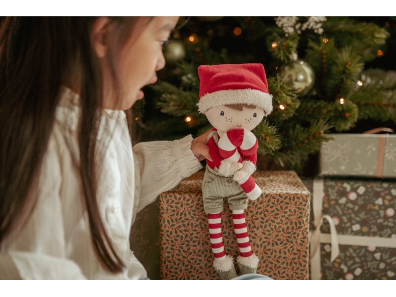 Panenka Jim ze speciální vánoční kolekce Little Dutch přináší do dětského pokojíčku radost, pohodu a vánoční kouzlo. Se svým měkkým tělíčkem, teplou čepicí a rozzářeným úsměvem je ideální pro mazlení i hraní během chladných zimních dnů. Díky suchému zipu na rukou si Jim pevně drží svoji cukrovou hůlku – roztomilý detail, který z něj dělá dokonalého vánočního kamaráda i krásnou dekoraci. Panenka je vyrobena z jemného polyesteru a dodává se v elegantní dárkové krabičce, takže potěší i jako originální vánoční dárek. Je součástí speciální vánoční kolekce doplňků a hraček Little Dutch. Rozměry: 35 × 6 × 9 cm Složení: 100% polyester Vhodné pro děti od 12 měsíců.