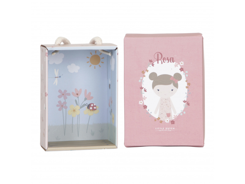 Roztomilá plyšová panenka Rosa z měkkého jemného materiálu je ideální jako první panenka pro vaše dítě. Panenka je vhodná na hraní i mazlení a bude se s ní i krásně usínat! Panenka je dodávána v krásné dárkové krabičce. Rozměry: 10 x 7 x 3,5 x cm Vhodné pro děti od 12 měsíců.