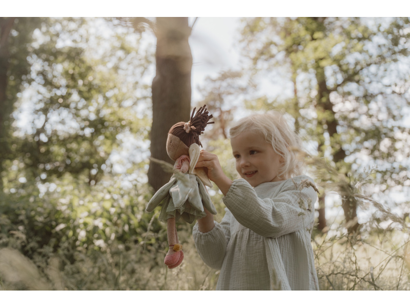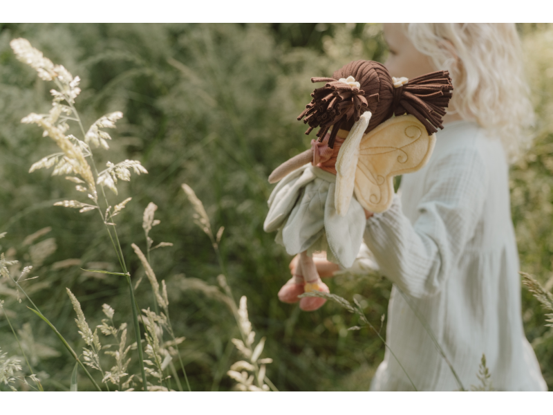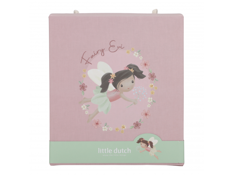 Z kouzelné květinové zahrady k vám domů přichází neodolatelná víla Evi! Panenka z jemnoho měkkého materiálu s křídly a krásnými šaty je vhodná na hraní i mazlení a bude se s ní i krásně usínat! Panenka dodávaná v krásném dárkovém boxu je součástí designové kolekce hraček a doplňků Little Dutch Fairy Garden inspirované životem na zahradě.. Složení: 100% polyester Výška: 35 cm Možno prát v pračce. Vhodné pro děti od 12 měsíců.