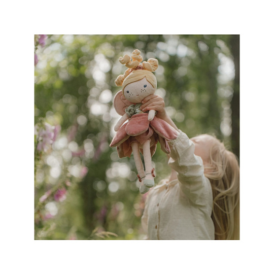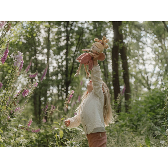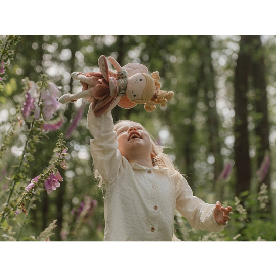 Z kouzelné květinové zahrady k vám domů přichází neodolatelná víla Mila! Panenka z jemnoho měkkého materiálu s křídly a krásnými šaty je vhodná na hraní i mazlení a bude se s ní i krásně usínat! Výplň je vyrobena ze 100% recyklovaného polyesteru s certifikací GRS (Global Recycled Standard). Rozměry: 35 x 19 x 8 cm Složení: 100% polyester Možno prát v pračce na 30°C. Vhodné pro děti od 12 měsíců.
