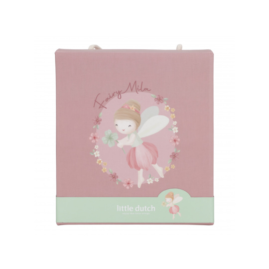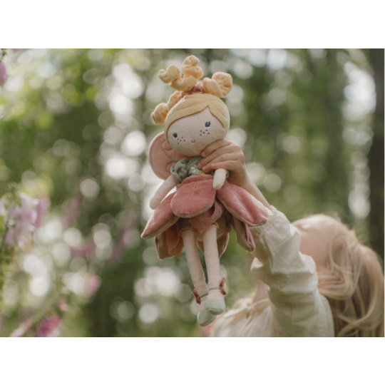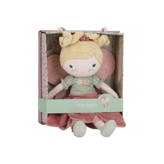 Z kouzelné květinové zahrady k vám domů přichází neodolatelná víla Mila! Panenka z jemnoho měkkého materiálu s křídly a krásnými šaty je vhodná na hraní i mazlení a bude se s ní i krásně usínat! Panenka dodávaná v krásném dárkovém boxu je součástí designové kolekce hraček a doplňků Little Dutch Fairy Garden inspirované životem na zahradě.. Složení: 100% polyester Výška: 35 cm Možno prát v pračce. Vhodné pro děti od 12 měsíců.
