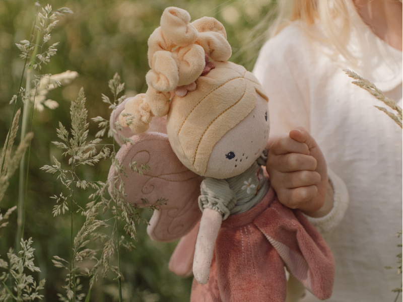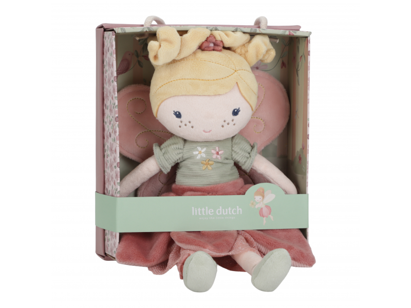 Z kouzelné květinové zahrady k vám domů přichází neodolatelná víla Mila! Panenka z jemnoho měkkého materiálu s křídly a krásnými šaty je vhodná na hraní i mazlení a bude se s ní i krásně usínat! Panenka dodávaná v krásném dárkovém boxu je součástí designové kolekce hraček a doplňků Little Dutch Fairy Garden inspirované životem na zahradě.. Složení: 100% polyester Výška: 35 cm Možno prát v pračce. Vhodné pro děti od 12 měsíců.