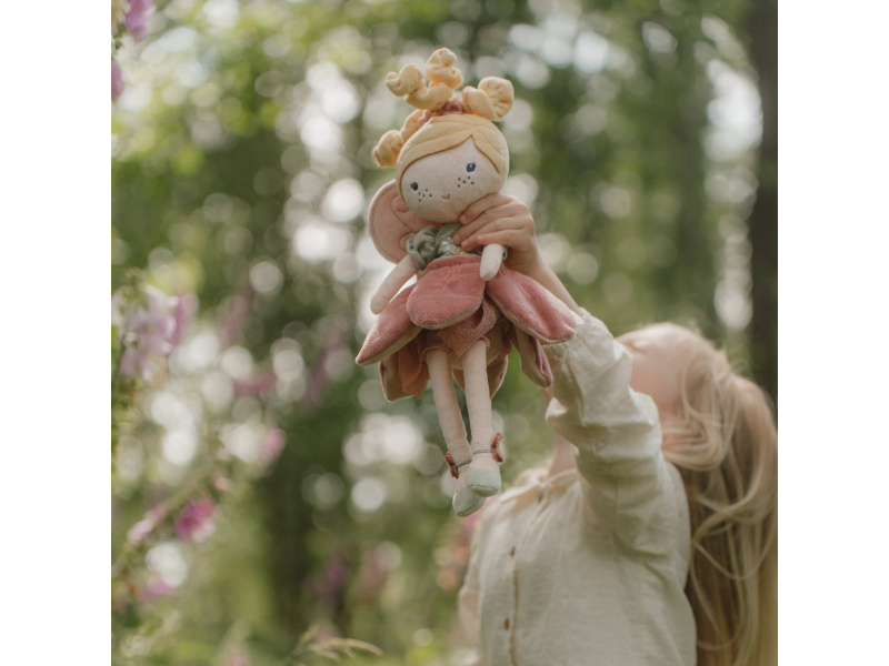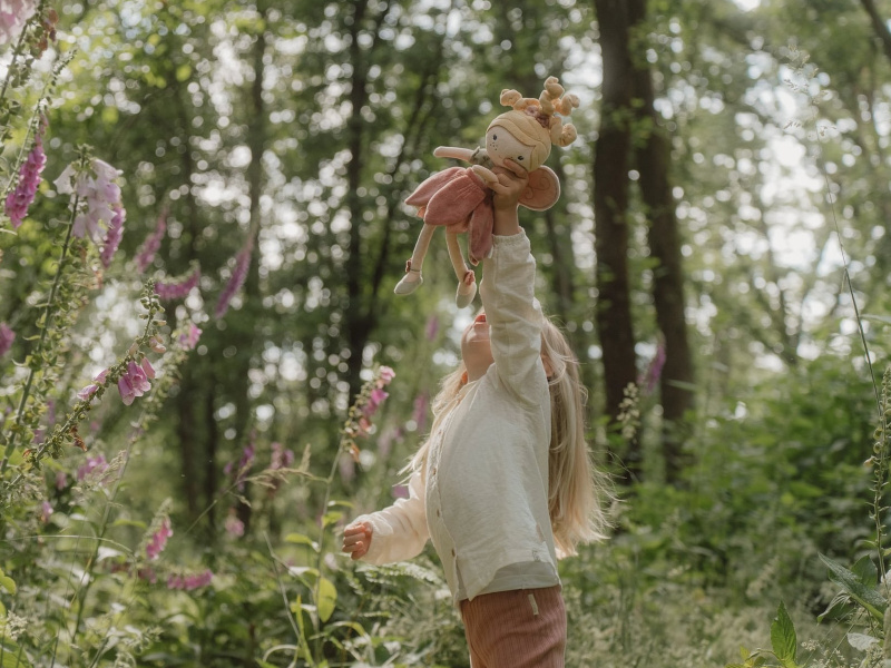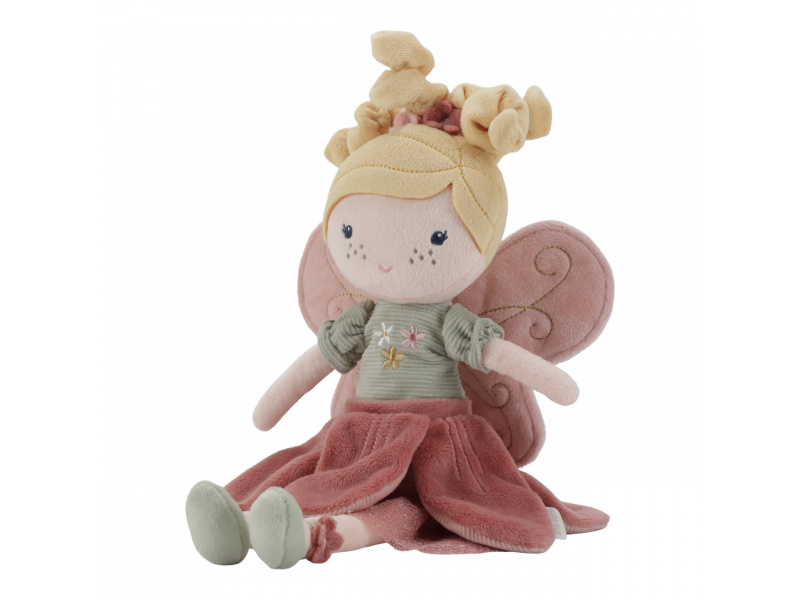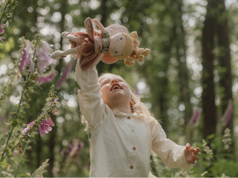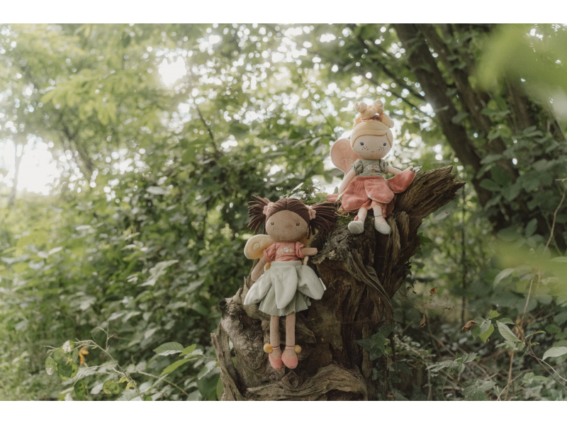 Z kouzelné květinové zahrady k vám domů přichází neodolatelná víla Mila! Panenka z jemnoho měkkého materiálu s křídly a krásnými šaty je vhodná na hraní i mazlení a bude se s ní i krásně usínat! Výplň je vyrobena ze 100% recyklovaného polyesteru s certifikací GRS (Global Recycled Standard). Rozměry: 35 x 19 x 8 cm Složení: 100% polyester Možno prát v pračce na 30°C. Vhodné pro děti od 12 měsíců.