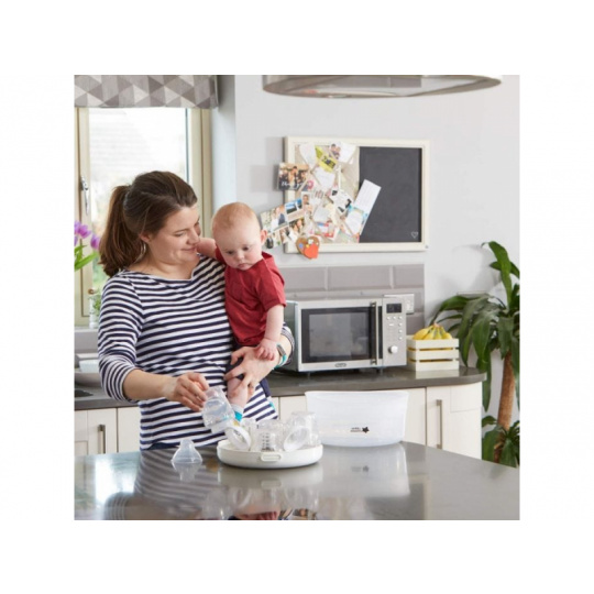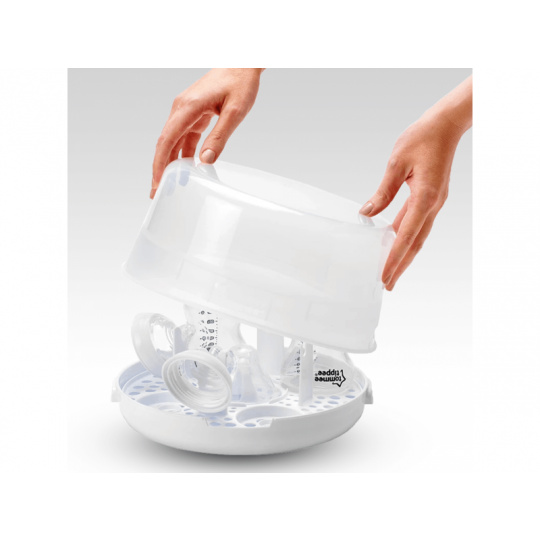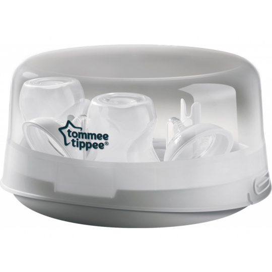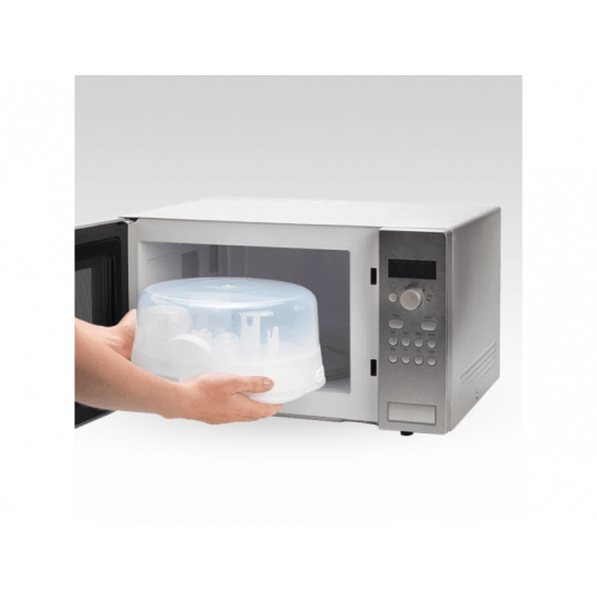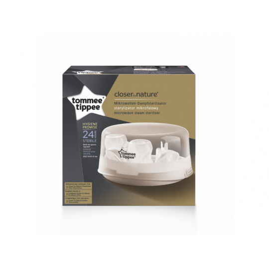 Lehký, kompaktní sterilizátor Tommee Tippee Closer to Nature umožňuje snadnou a rychlou sterilizaci až 4 kojeneckých lahví a doplňků během cca 4-8 minut (dle příkonu mikrovlnky). Obsah zavřeného sterilizátoru zůstává sterilní po dobu 24 hodin. Kompaktní velikost umožňuje jeho použití i na cestách. Navržen speciálně pro láhve Tommee Tippee Closer to Nature. Balení obsahuje: sterilizátor, silikonové šidítko Tommee Tippee Closer to Nature Anytime 0-6m a kleště na savičky. Lahvičky nejsou součástí výrobku. Neobsahuje bisfenol.