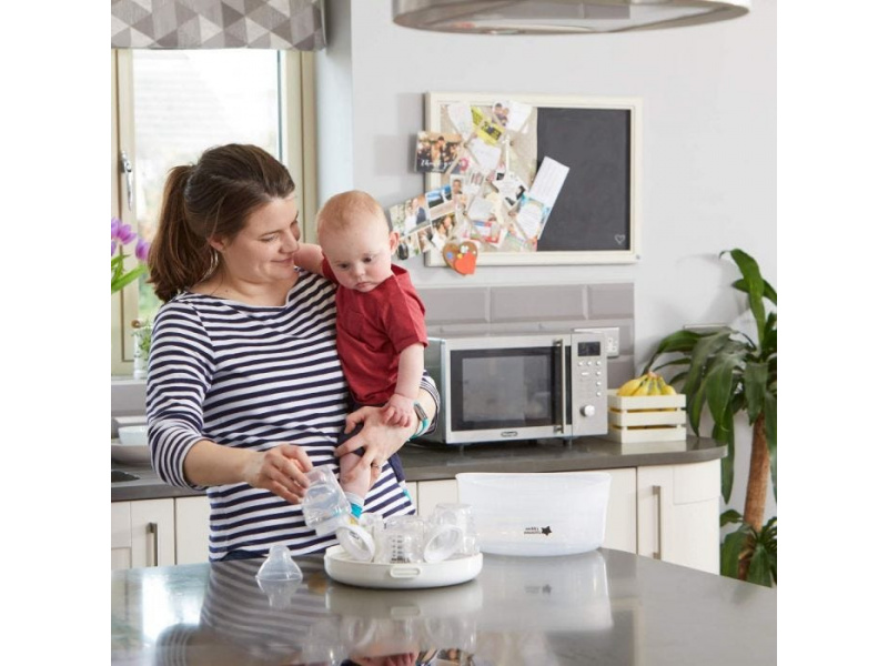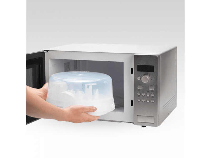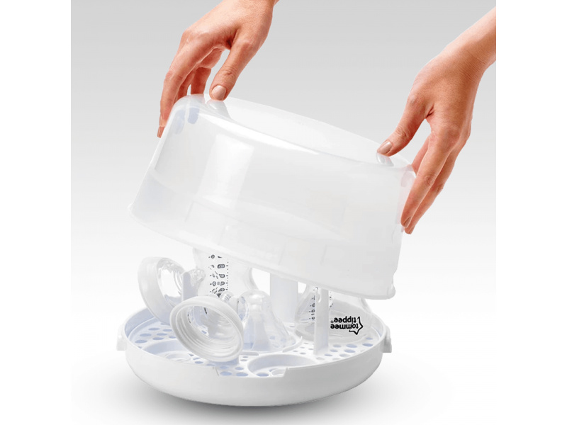 Lehký, kompaktní sterilizátor Tommee Tippee Closer to Nature umožňuje snadnou a rychlou sterilizaci až 4 kojeneckých lahví a doplňků během cca 4-8 minut (dle příkonu mikrovlnky). Obsah zavřeného sterilizátoru zůstává sterilní po dobu 24 hodin. Kompaktní velikost umožňuje jeho použití i na cestách. Navržen speciálně pro láhve Tommee Tippee Closer to Nature. Balení obsahuje: sterilizátor, silikonové šidítko Tommee Tippee Closer to Nature Anytime 0-6m a kleště na savičky. Lahvičky nejsou součástí výrobku. Neobsahuje bisfenol.