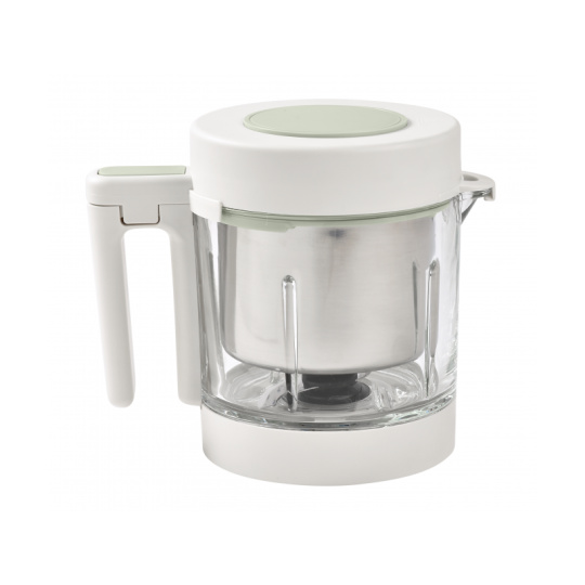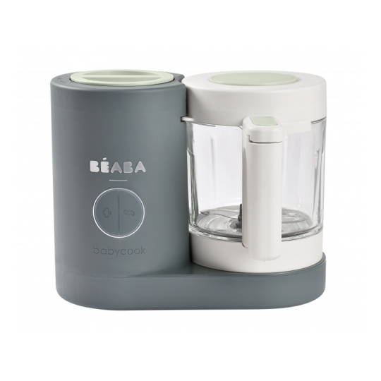 Skvělou pomoc při přípravě pokrmů pro děti představuje parní hrnec a mixér v jednom Babycook® Beaba. Babycook® umožňuje zdravě uvařit pokrm v páře a následně ho ve stejné nádobě rozmixovat. Zcela nový model Babycook® NEO má skleněnou nádobu s objemem 1250 ml a nerezový vkládací košík s objemem 1000 ml. Nerezový zásobník na vodu s vnitřní ryskou a se širokým vstupním otvorem usnadňuje plnění vodou i čištění zásobníku. Příprava jídla v Babycooku je velmi snadná – pouze do něj nalijete vodu, do vkládacího košíku vložíte na kousky nakrájené suroviny (zeleninu, maso atd.) a přístroj zapnete. Po skončení vaření (trvá nejdéle 15 min) se Babycook sám vypne. Chcete-li následně pokrm rozmixovat, pouze vysypete uvařené suroviny z vkládacího košíku do průhledné hlavní nádoby a rozmixujete (podle věku dítěte na jemnou hladkou kaši, nebo na hrubší strukturu s kousky). Když se dítě naučí dobře kousat, dá se Babycook® dále používat pro zdravé vaření v páře i bez mixování. Přístroj je možné použít i pro rozmrazování a ohřívání dětské stravy. Příkon: 400 W