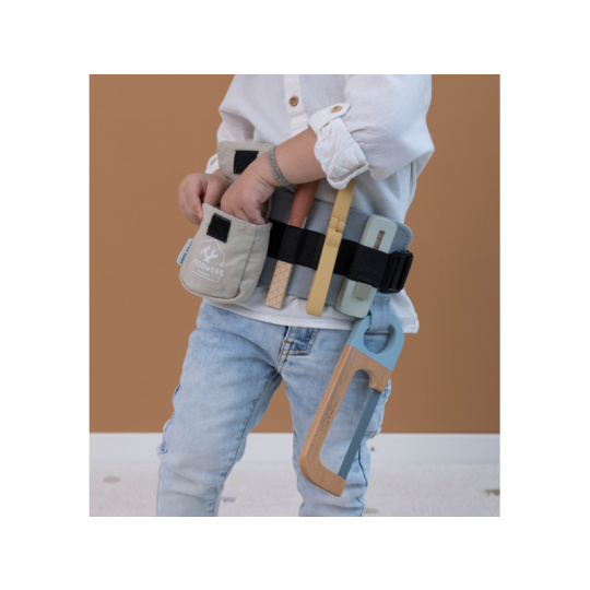 Díky pásku s úchyty na nářadí bude mít váš malý opravář všechny své nástroje vždy po ruce. Své místo na opasku má metr, kleště, řezáček na krabice, pilka i pilník. Děti se učí napodobováním svých rodičů a zároveň taková hra rozvíjí kreativitu, soustředění, jemnou motoriku a sociální dovednosti. V nabídce dřevěných hraček Little Dutch najdete i další hračky pro malé kutily a kutilky, např. Sadu nářadí v boxu 15-dílnou 4434LD, Box s nářadím 7078LD, Vrtačku dřevěnou 7091LD nebo Ponk dřevěný 4448LD. Rozměry: 28 x 16 x 8 cm Vhodné pro děti od 3 let.