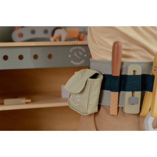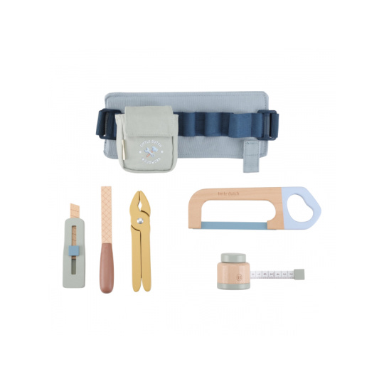 Díky pásku s úchyty na nářadí bude mít váš malý opravář všechny své nástroje vždy po ruce. Své místo na opasku má metr, kleště, řezáček na krabice, pilka i pilník. Děti se učí napodobováním svých rodičů a zároveň taková hra rozvíjí kreativitu, soustředění, jemnou motoriku a sociální dovednosti. Hračka je součástí kolekce vysoce kvalitních dřevěných hraček Little Dutch, navržených s důrazem na bezpečnost a originální design. Rozměry: 28 x 16 x 8 cm Vhodné pro děti od 3 let.