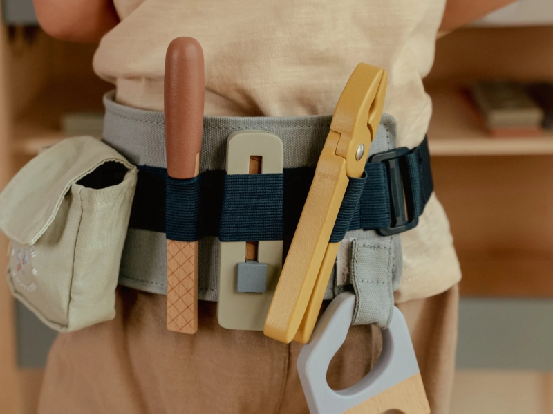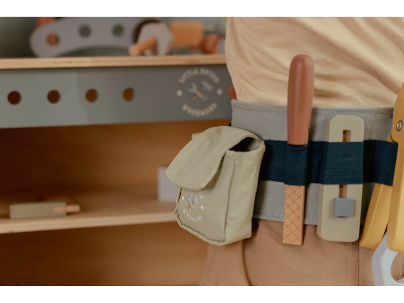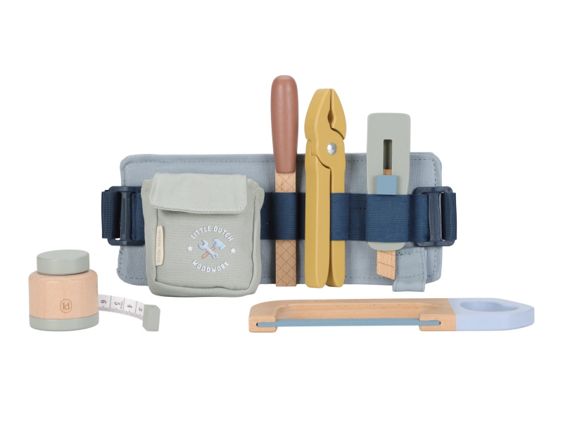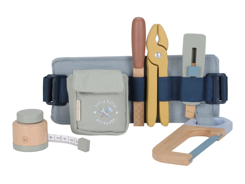 Díky pásku s úchyty na nářadí bude mít váš malý opravář všechny své nástroje vždy po ruce. Své místo na opasku má metr, kleště, řezáček na krabice, pilka i pilník. Děti se učí napodobováním svých rodičů a zároveň taková hra rozvíjí kreativitu, soustředění, jemnou motoriku a sociální dovednosti. Hračka je součástí kolekce vysoce kvalitních dřevěných hraček Little Dutch, navržených s důrazem na bezpečnost a originální design. Rozměry: 28 x 16 x 8 cm Vhodné pro děti od 3 let.