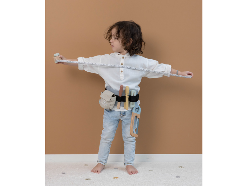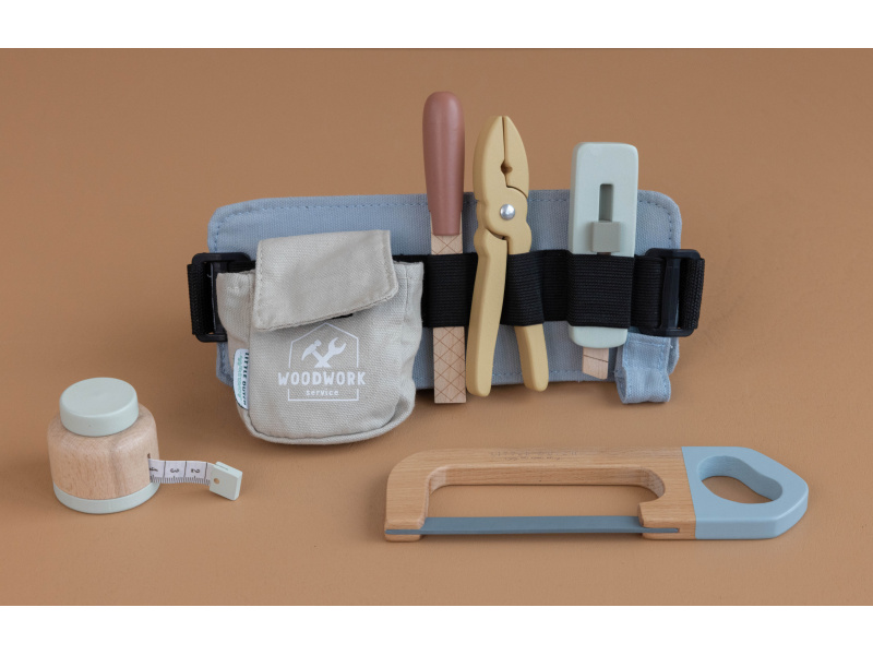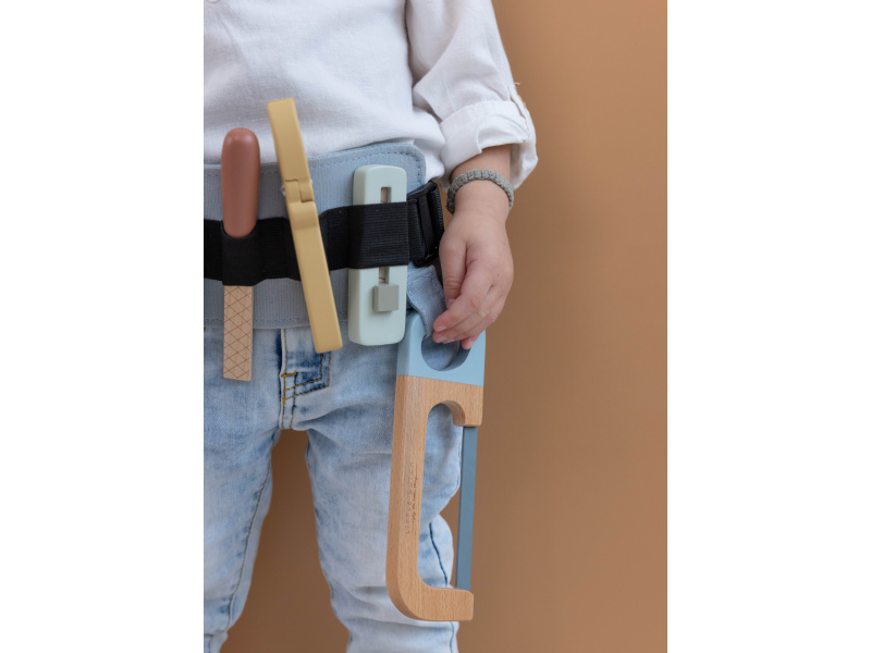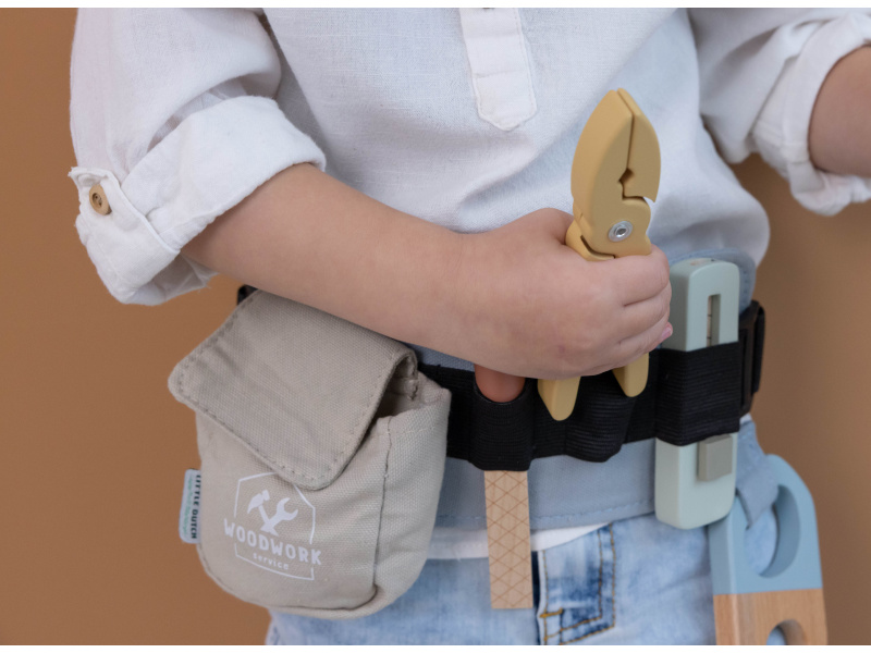 Díky pásku s úchyty na nářadí bude mít váš malý opravář všechny své nástroje vždy po ruce. Své místo na opasku má metr, kleště, řezáček na krabice, pilka i pilník. Děti se učí napodobováním svých rodičů a zároveň taková hra rozvíjí kreativitu, soustředění, jemnou motoriku a sociální dovednosti. V nabídce dřevěných hraček Little Dutch najdete i další hračky pro malé kutily a kutilky, např. Sadu nářadí v boxu 15-dílnou 4434LD, Box s nářadím 7078LD, Vrtačku dřevěnou 7091LD nebo Ponk dřevěný 4448LD. Rozměry: 28 x 16 x 8 cm Vhodné pro děti od 3 let.