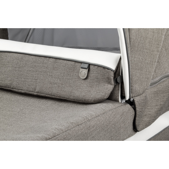 Elegantní madlo na přenášení z eko kůže je patentem Peg Perego. Stříšku můžete spustit jednou rukou, i když držíte své dítě.