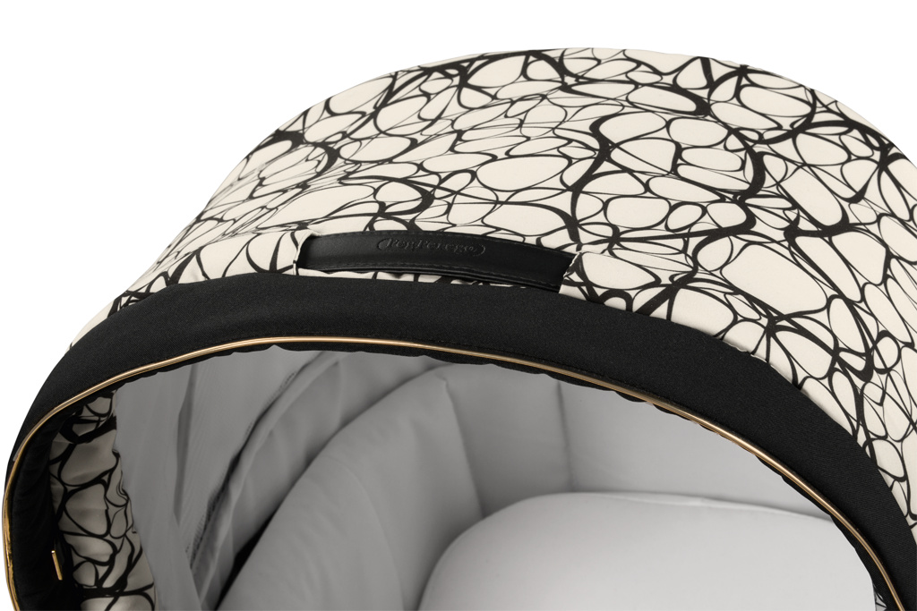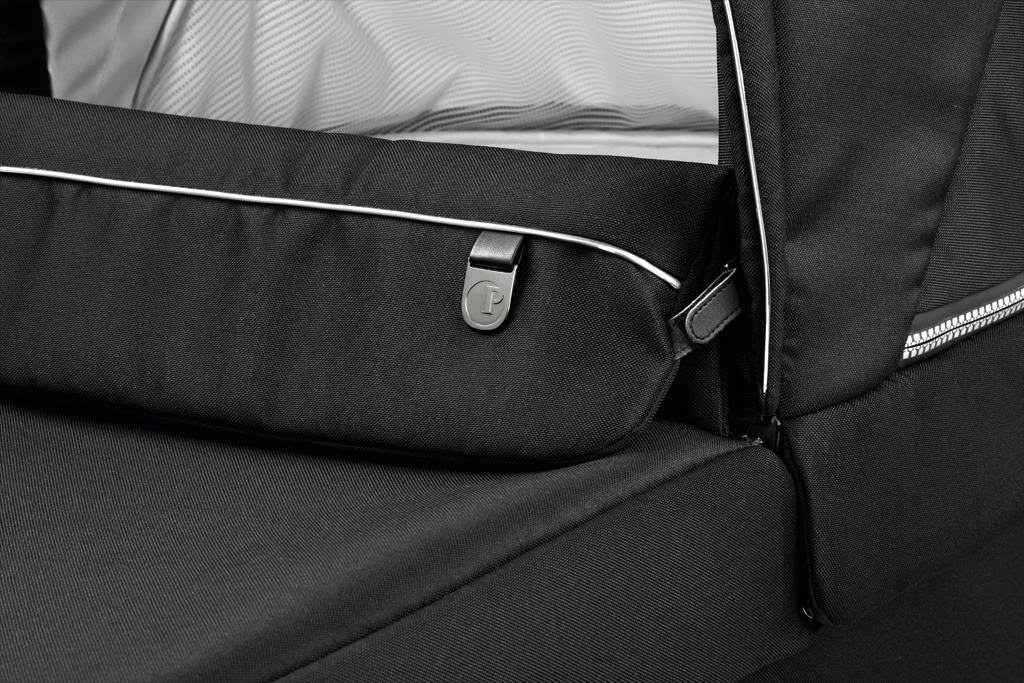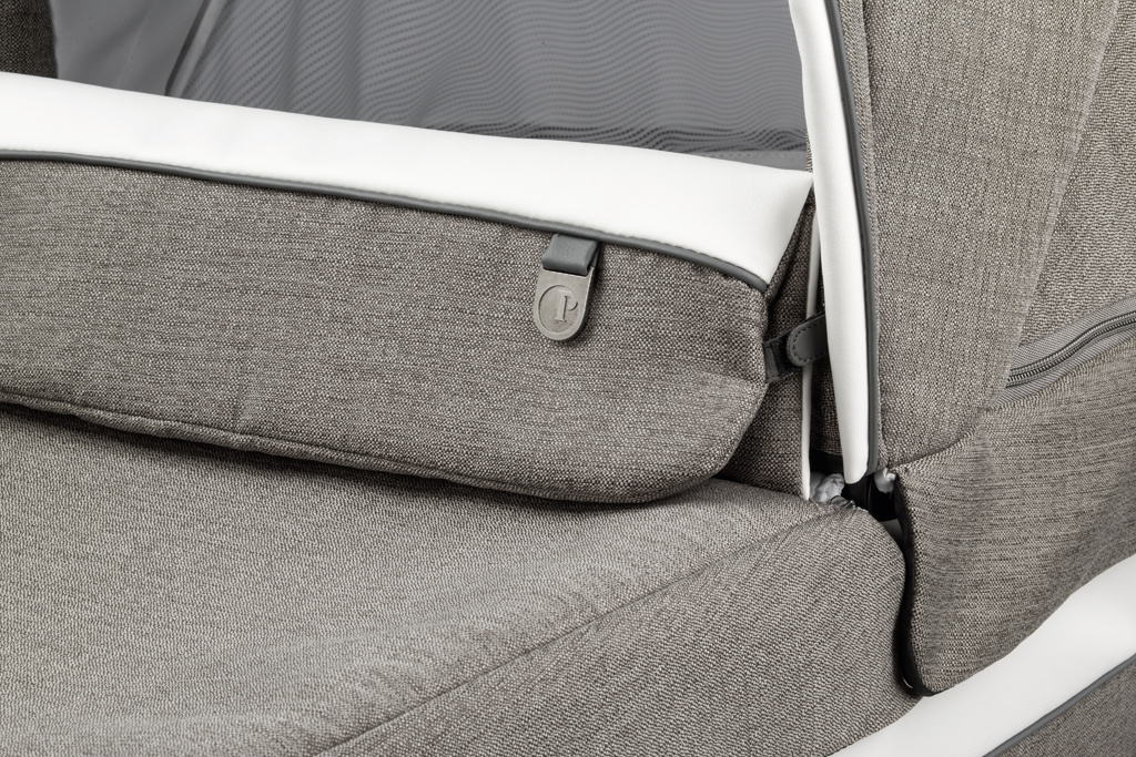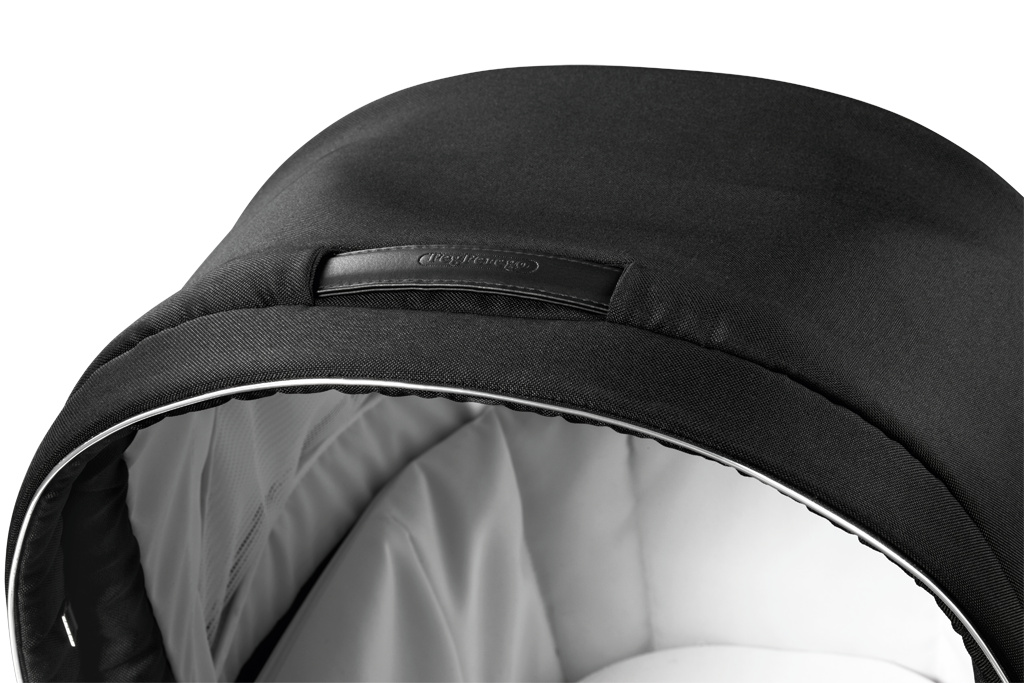 Elegantní madlo na přenášení z eko kůže je patentem Peg Perego. Stříšku můžete spustit jednou rukou, i když držíte své dítě.