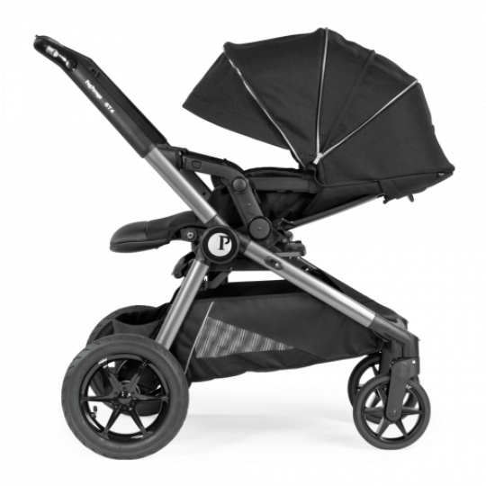 Otočná sportovní nástavba kočárku GT4 poskytuje pohodlnou jízdu pro děti od narození až do 22 kg a umožňuje současné nastavení opěrky zad a stříšky.