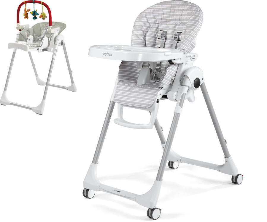 Židlička roste s Vaším dítětem od narození až do 3 let: během prvních několika měsíců může být židlička Prima Pappa Follow Me používána jako pohodlné, relaxační naklápěcí lehátko. Od 6 měsíců věku dítěte poslouží jako jídelní židlička pro krmení a hraní a později, bez polohovacího tácku, k sezení u stolu společně s dospělými. Díky 4 kolečkům lze židličku snadno přemisťovat po vaší domácnosti. Celou židličku lze výškově nastavit do 7 pozic, její opěrka nohou je nastavitelná do 3 pozic a zádová opěrka do 5 pozic (více než 150 °). Pro snadnou údržbu je polstrování vyrobené z PVC a Eco-kůže. Dvojitý polohovatelný a odnímatelný tácek s držákem na láhev je vhodný i do myčky na nádobí a ve spodní části je opatřený bezpečnostní přepážkou, která zabraňuje vyklouznutí dítěte z židličky. Ve složeném stavu stojí samostatně a zabírá málo místa.