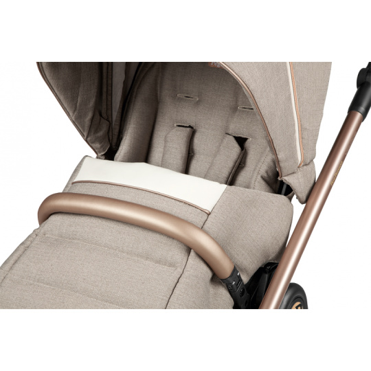 Výškově nastavitelná rukojeť v eco kůži zajišťuje to nejpohodlnější a nejpřívětivější ovládání kočárku i jen jednou rukou. Jelikož i na pouhou procházku je zapotřebí vzít si s sebou spoustu nezbytností, snadno přístupný a prostorný košík kočárku Veloce je vybavený vyztuženým dnem pro těžší náklad. I na košíku se nacházejí reflexní prvky pro vyšší bezpečnost během snížené viditelnosti. Ať už vaše dítě v kočárku zrovna odpočívá nebo objevuje okolní svět, roztahovací UPF 50+ stříška jej ochrání před sluncem a větrem. Neméně užitečný je i na míru šitý nánožník, který poskytuje ochranu dítěte i v případě sklopené opěrky zad.