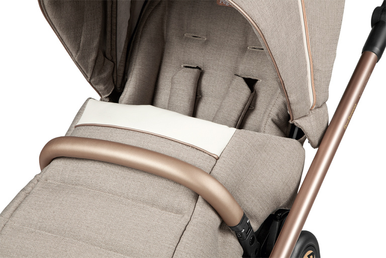 Výškově nastavitelná rukojeť v eco kůži zajišťuje to nejpohodlnější a nejpřívětivější ovládání kočárku i jen jednou rukou. Jelikož i na pouhou procházku je zapotřebí vzít si s sebou spoustu nezbytností, snadno přístupný a prostorný košík kočárku Veloce je vybavený vyztuženým dnem pro těžší náklad. I na košíku se nacházejí reflexní prvky pro vyšší bezpečnost během snížené viditelnosti. Ať už vaše dítě v kočárku zrovna odpočívá nebo objevuje okolní svět, roztahovací UPF 50+ stříška jej ochrání před sluncem a větrem. Neméně užitečný je i na míru šitý nánožník, který poskytuje ochranu dítěte i v případě sklopené opěrky zad.